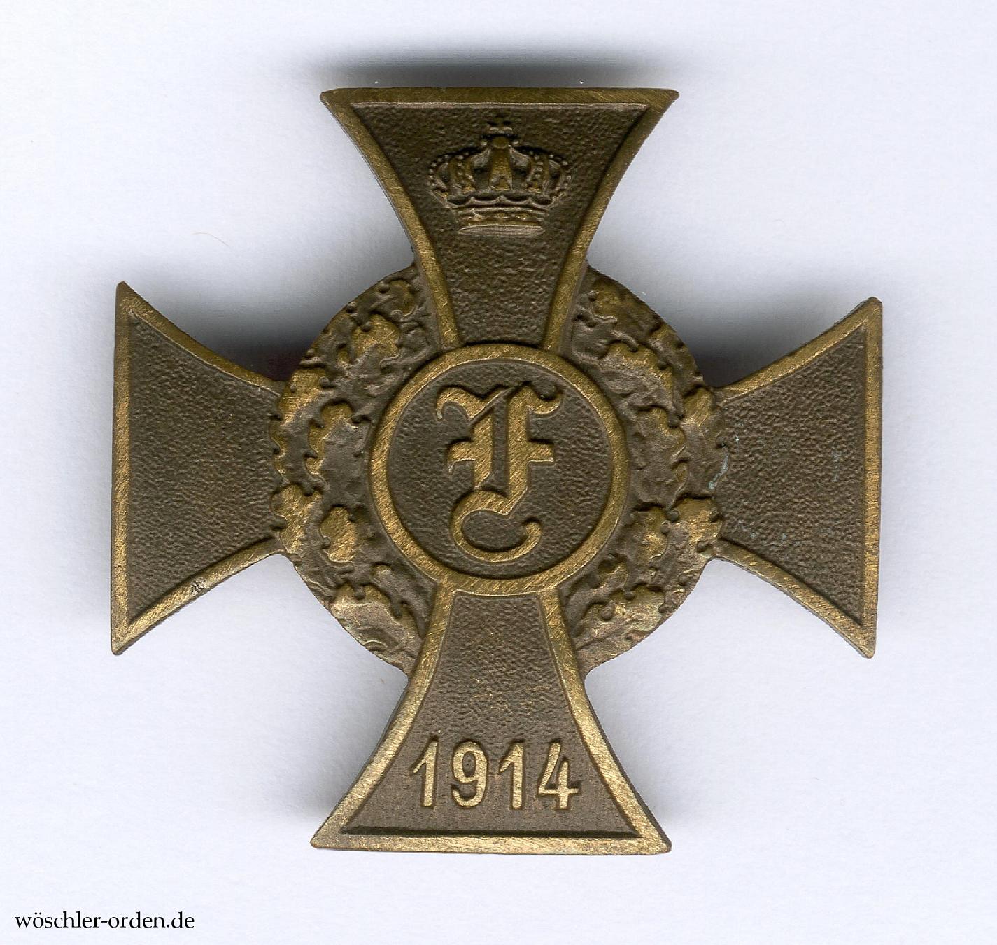 Das Friedrich-Kreuz wurde durch Herzog Friedrich II. am 12. Dezember 1914 „für Offiziere, Militärbeamte, Unteroffiziere und Mannschaften sowie für sonstige Personen ohne Unterschied des Ranges und des Standes, die sich auf dem Kriegsschauplatz besonders ausgezeichnet oder während des Krieges im Heimatgebiet hervorragend betätigt haben“, gestiftet. Es konnte an verschiedenen Bändern, nämlich dem für Verdienste auf dem Kriegsschauplatz und dem für sonstige Verdienste, verliehen werden. Laut Volle, der sich auf Scharfenberg und Danner bezieht, wurden etwa 18.000 bis 20.000 Kreuze am „Kämpferband“ sowie 1174 am „Nichtkämpferband“ verliehen. Bei den selten vorkommenden authentischen Steckkreuzen handelt es sich meines Erachtens um spätere, private Fertigungen, die von den einschlägigen Herstellern regelrecht „erfunden“ wurden – das Kreuz war während des Verleihungszeitraums stets einklassig geblieben.