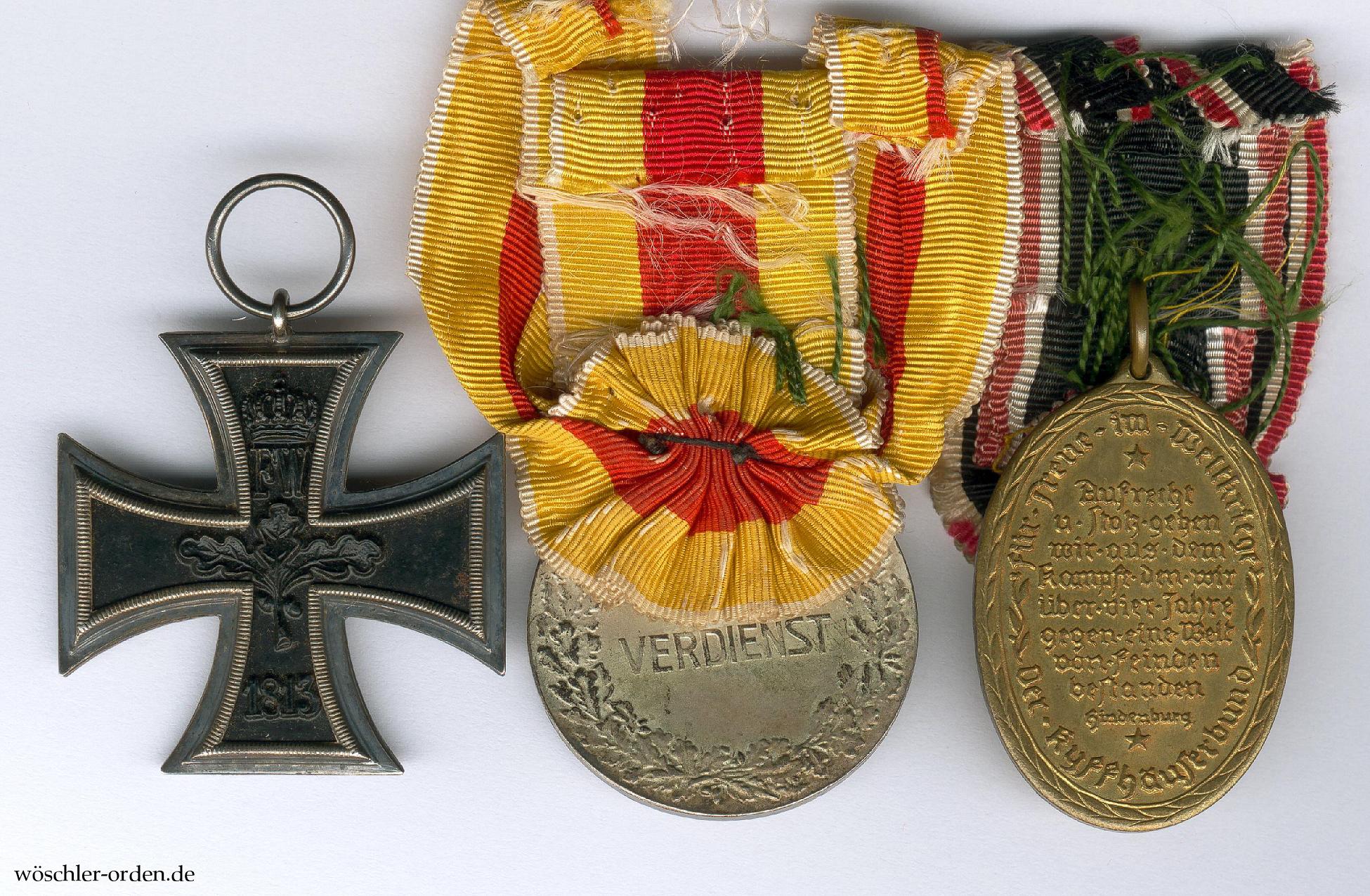 Exemplar der achten und letzten, während des Ersten Weltkrieges verliehenen Ausgabe. Silber geprägt, an mittels einem Silberblechstreifen angelötetem Bügel. Rückseitig schraffierte Namensgravur „BRAUN“. An verblasstem Bandstück.