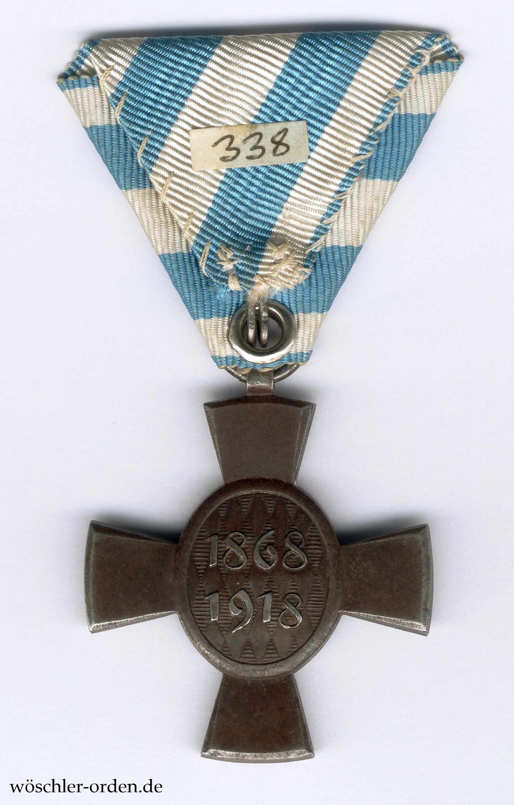 Dieses Jubiläumskreuz wurde durch König Ludwig III. Anfang April 1918 anlässlich seines 50-jährhigen Inhaber-Jubiläums gestiftet und allen Oberoffizieren, Militärbeamten, älteren Unteroffizieren sowie den früheren Kommandeuren des Regiments verliehen. Die Münze zu München prägte hiervon 350 Stück. Trotz dieser nicht ganz geringen Zahl taucht es im Handel nur äußerst selten auf.