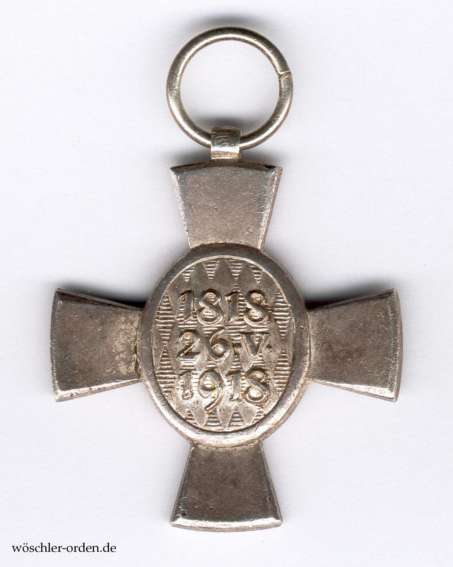 Das König-Ludwig-Kreuz in Silber am Jubiläumsbande wurde durch König Ludwig III. am 26. Mai 1918, dem 100. Jahrestag der Verkündigung der bayerischen Verfassung gestiftet und vor allem an die Reichsräte der Krone Bayerns und die Landtagsabgeordneten verliehen. Die Gestaltung ist der des (Kriegs-) König-Ludwig-Kreuzes entlehnt, das Band entspricht dem des Jubiläumskreuzes für Offiziere und Unteroffiziere des K.u.K.-Infanterie-Regiments Nr. 62 „Ludwig III. König von Bayern“, das just wenige Wochen zuvor gestiftet worden war. Das Hauptmünzamt zu München lieferte insgesamt 272 Exemplare, von denen 250 verliehen wurden. Bergmann schlüsselt die Träger nach Funktion bzw. Geschäftsbereich auf. Die gelegentlich vorkommende Benennung als „Silbernes Erinnerungskreuz für die Mitglieder beider Kammern beim 100-jährigen Jubiläum der bayerischen Verfassung“ ist nicht offiziell.