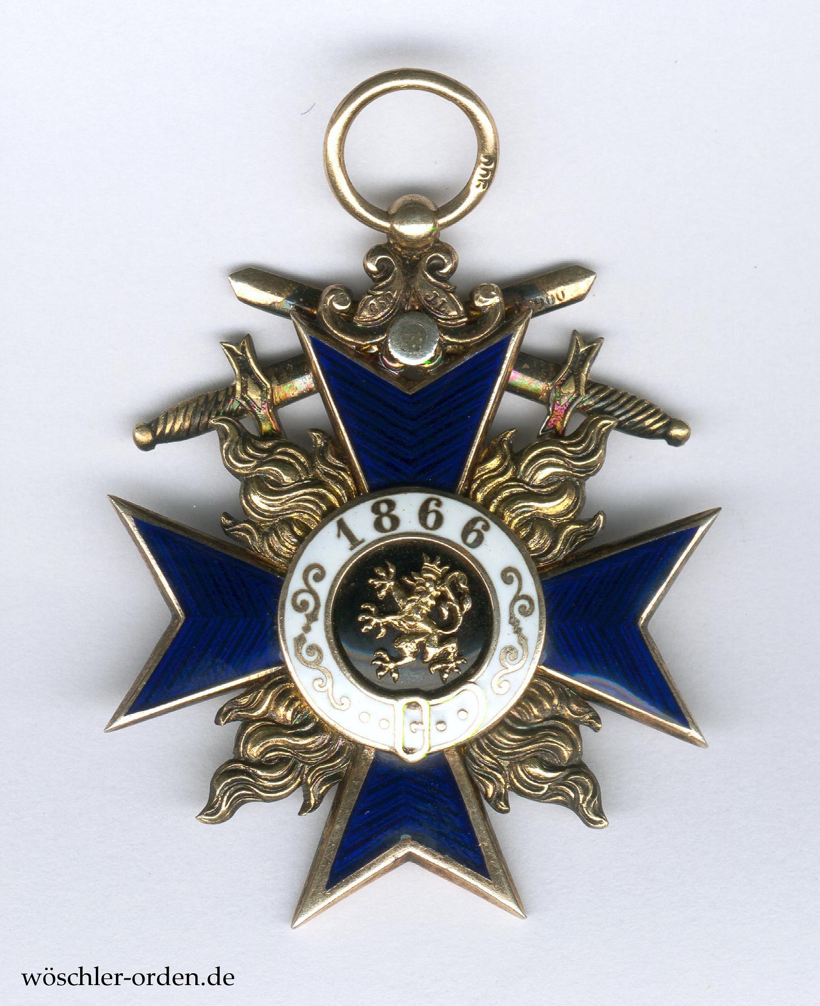 Zweites, ab 1905 verliehenes Modell, in der ab Anfang 1917 gefertigten Ausführung in vergoldetem Silber, hier aus Fertigung der Firma Jacob Leser, Straubing.