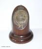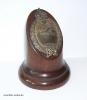 Auf gedrehten, eigens für das Abzeichen angefertigten Holz-Sockel verschraubt.