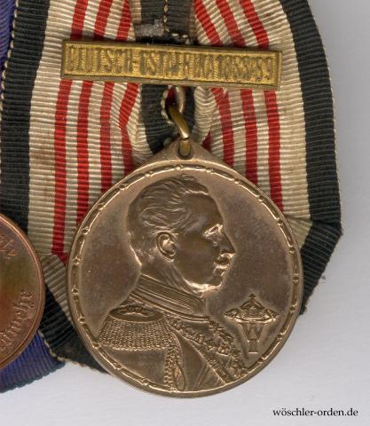 Wohl Königreich Preußen, 3-teilige Große Ordensschnalle eines vormaligen Angehörigen der Kaiserlichen Marine und Veteranen „militärischer Aktionen“ an der Ostküste Afrikas in einer unbestimmten (wohl zivilen) Weltkriegsverwendung, mit folgenden Auszeichnungen:
