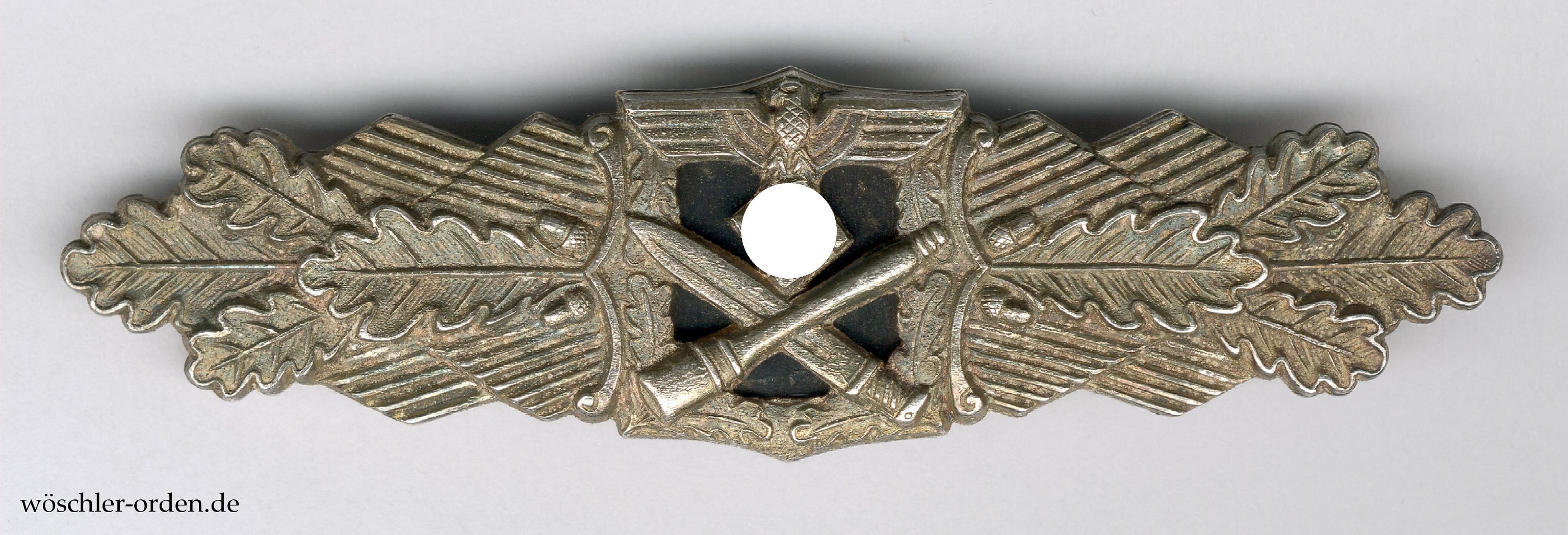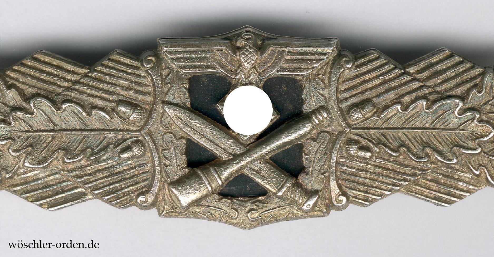 Die Nahkampfspange wurde durch Adolf Hitler mit Verordnung vom 25. November 1942 in den drei Stufen Bronze, Silber und Gold für Soldaten aller Dienstgrade, die sich in typischen Nahkampfeinsätzen der Infanterie, d. h. in Stoßtrupps, im Grabenkampf, beim Stürmen einer Stellung, bei der Abwehr eines Infanterieangriffs oder beim Antreten von Nahkampftrupps gegen Panzer, bewährt hatten, gestiftet. Sie war die höchste und angesehenste infanteristische Kriegsauszeichnung des Zweiten Weltkriegs; in Silber sollen etwa 9500 Verleihungen erfolgt sein.