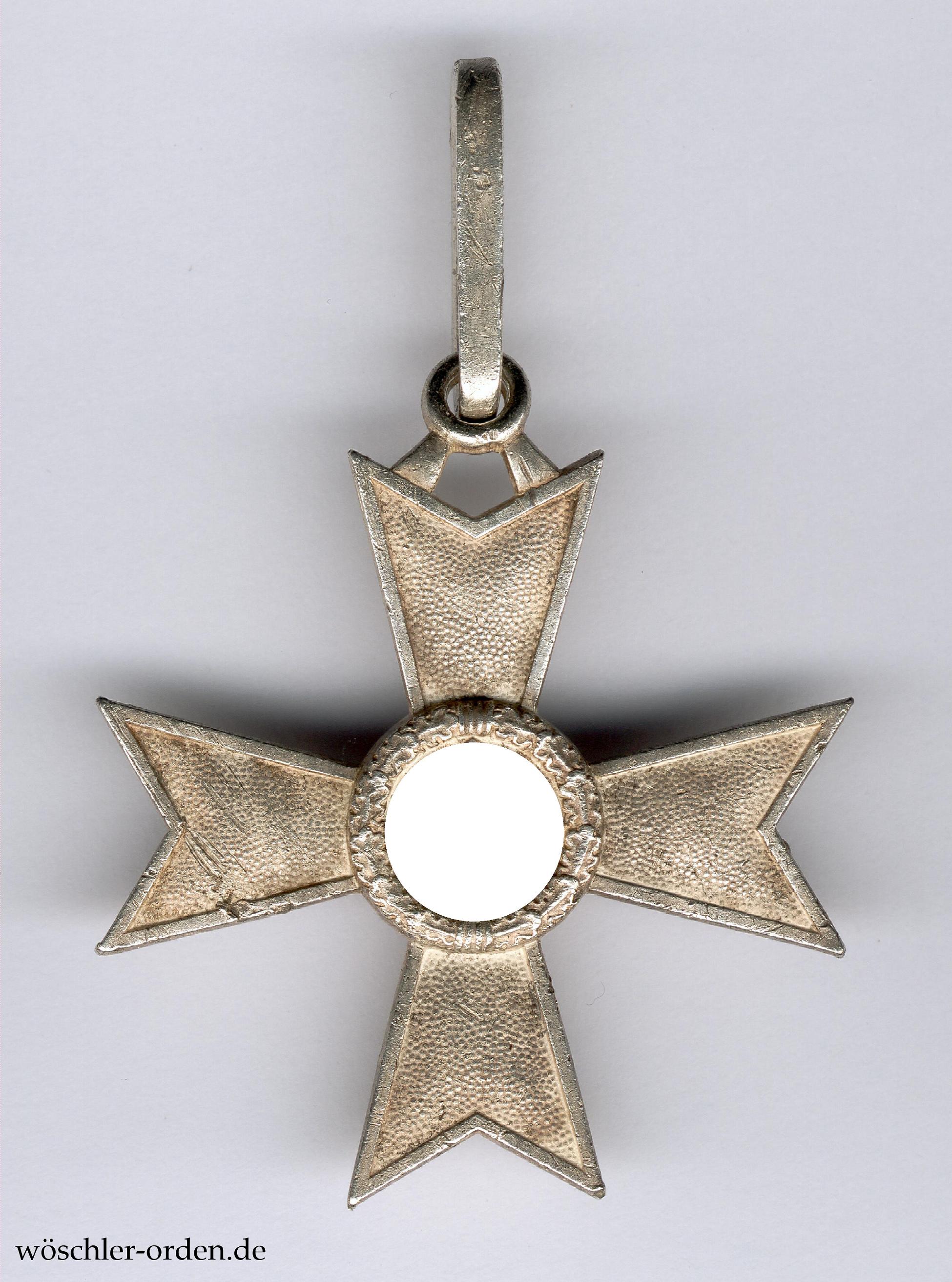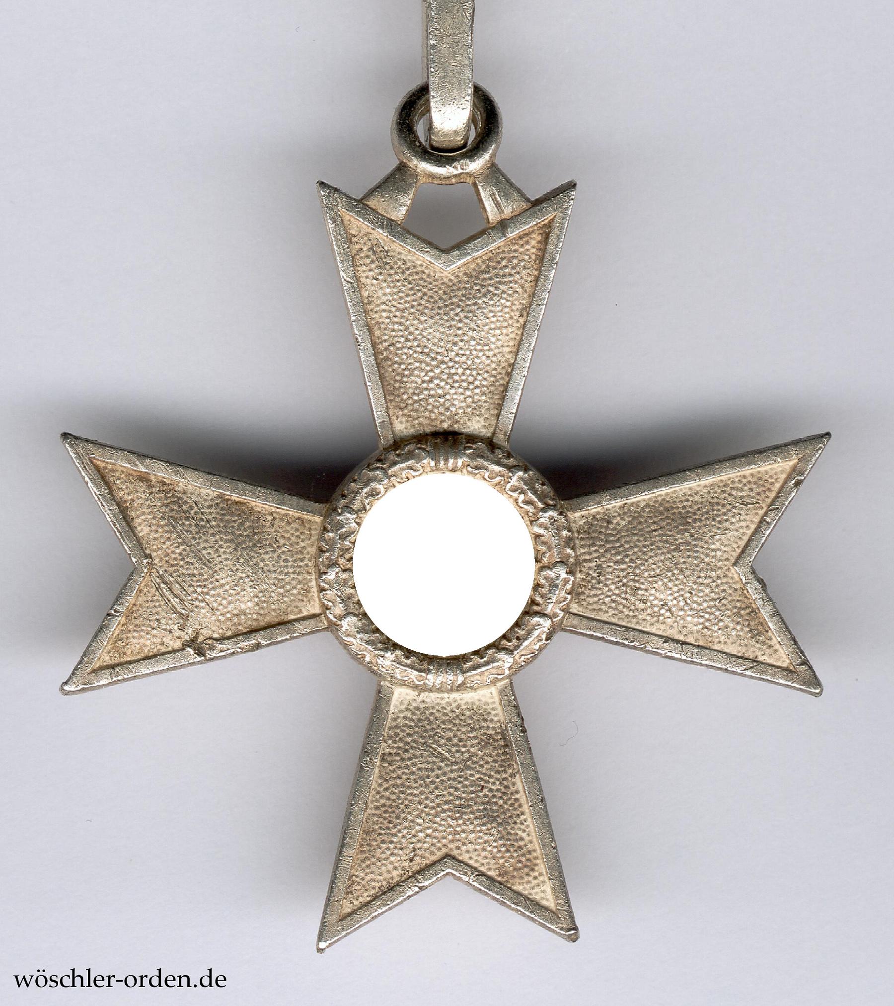 Silber, einteilig geprägt und weißgesiedet, an länglichem, geschlossenen Bandring. Am unteren Kreuzarm schwach geschlagene Punzierungen „900“ für den Feingehalt sowie Herstellerpunze „1“ der Firma Deschler & Sohn, München. In dieser Stufe sind ohne Schwerter insgesamt lediglich 59 Verleihungen nachweisbar.