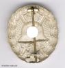 Exemplar der ersten, bis spätestens 1941 gefertigten und verausgabten, nicht standardisierten Form. Buntmetall hohl geprägt und matt versilbert, rückseitig mit ebenfalls buntmetallenem Nadelsystem mit einer dünnen Rundnadel. Ohne eine Herstellersignatur wird diese Variante der Firma Gebrüder Wegerhoff, Lüdenscheid („GWL“), zugeschrieben.