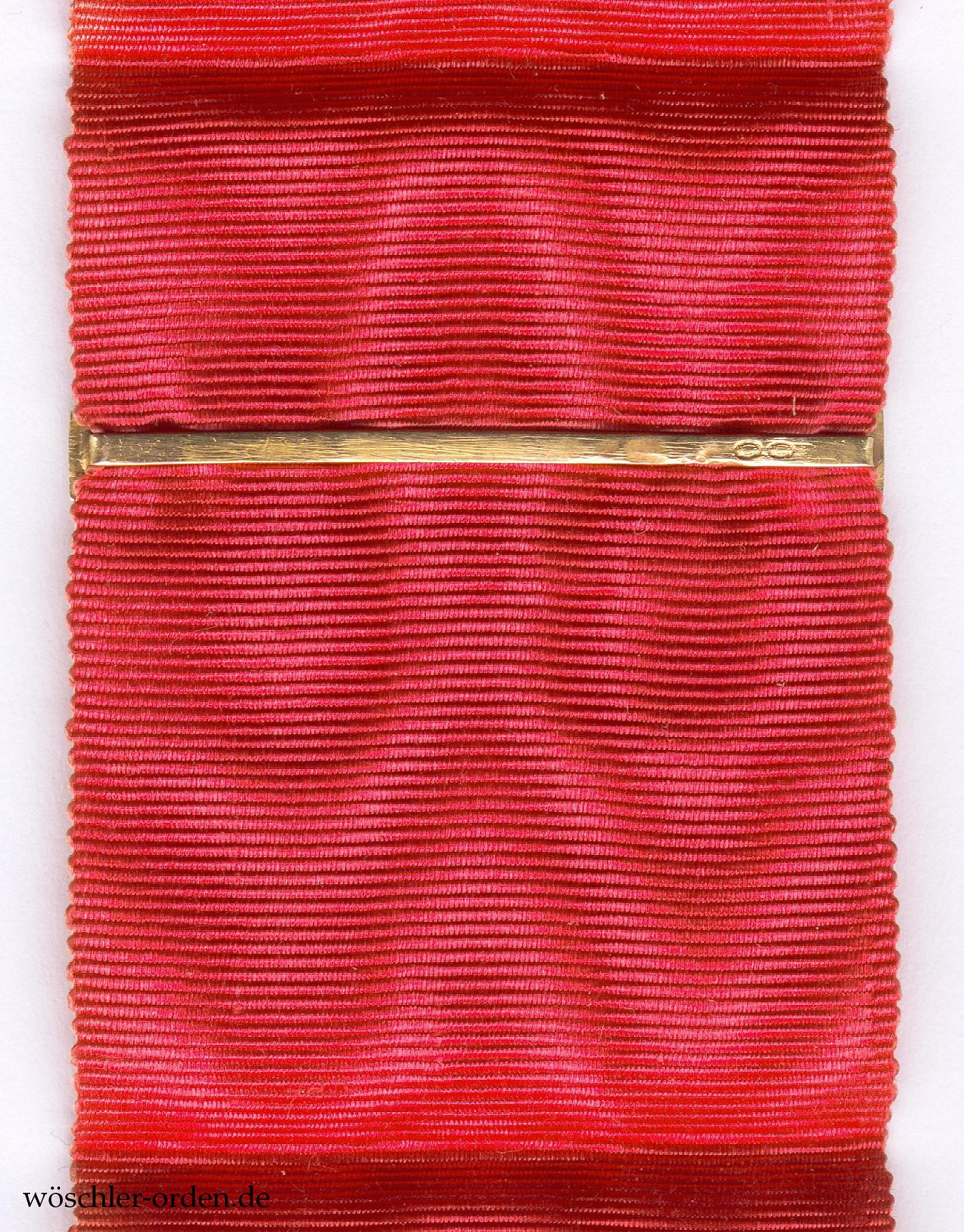 Die Tragespange mit einigen Kratzern, eventuell alte „Prüfspur“, die Orden mit geringfügigen, tragebedingten Emailleschäden. Das Band etwas verblasst.