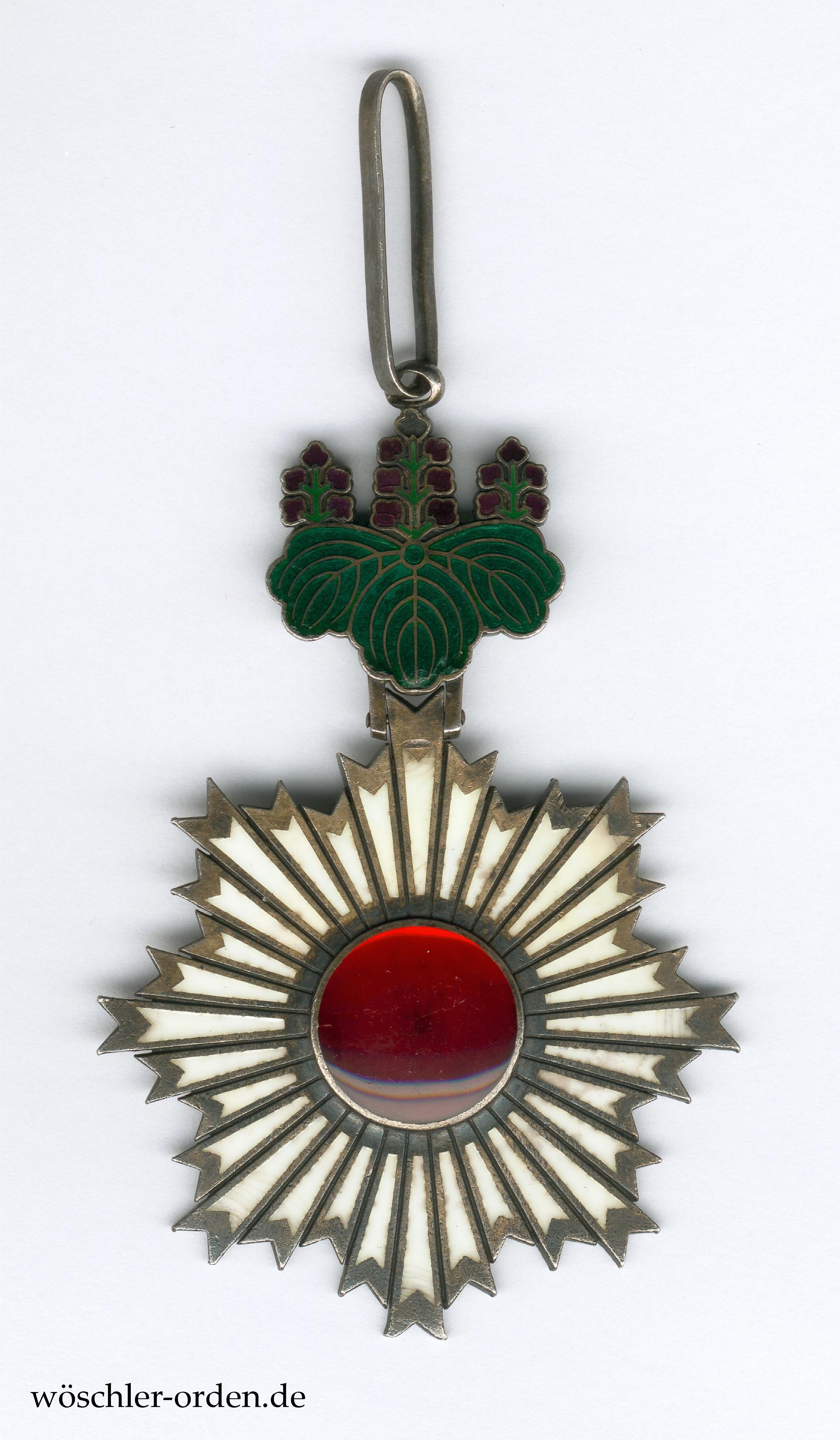 Japan, Orden der Aufgehenden Sonne („Kyokujitsu-sho“), III. Klasse bzw. „Goldene Strahlen am Halsband“ („Kyokujitsu Chuju-sho“).