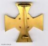Exemplar aus Fertigung der Firma C. F. Zimmermann, Pforzheim. Geschützbronze einseitig geprägt und vergoldet, gewölbt, rückseitig stabiles Nadelsystem; wie üblich ohne eine Herstellerkennzeichnung.
