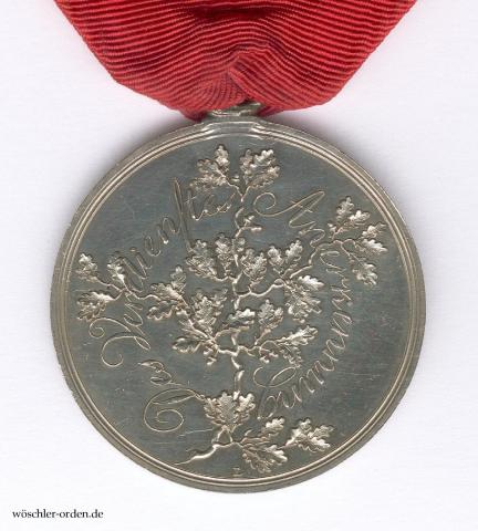 Exemplar der ersten Ausgabe, von der im Jahre 1816 durch den „Kgl. Preuß. Hof-Medailleur“ Daniel Friedrich Loos zu Berlin insgesamt 300 Exemplare angefertigt wurden. Silber geprägt, an parallel angelöteter Öse. Dieser Bestand war für Verleihungen bis 1902(!) ausreichend.