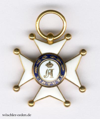 Gold, vielteilig gefertigt und mehrfarbig emailliert, die Medaillons feinst nachgraviert. Nach Angaben eines Kenners der Materie zwar ein Exemplar der Firma C. M. Weishaupt und Söhne, Hanau, jedoch aus einer Fertigung nach der Annexion Nassaus im Jahre 1866.