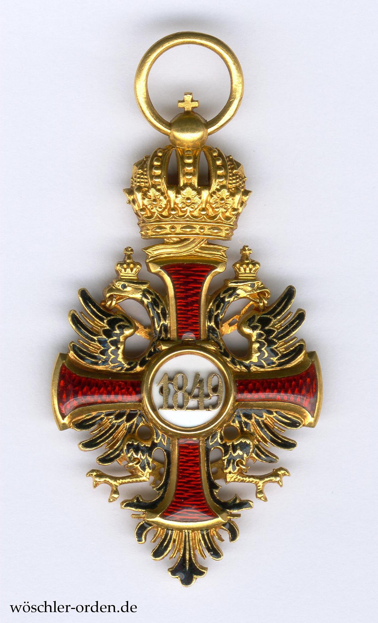 Der Franz-Joseph-Orden wurde am 2. Dezember 1849 in ursprünglich drei Klassen als allgemeiner Verdienstorden gestiftet, und konnte ohne Ansehen des Standes verliehen werden. Während seines Bestehens wurde er mehrfach erweitert, durch zusätzliche Klassen bzw. Stufen, später auch durch Hinzufügung spezieller Kriegsdekorationen und Schwerter.