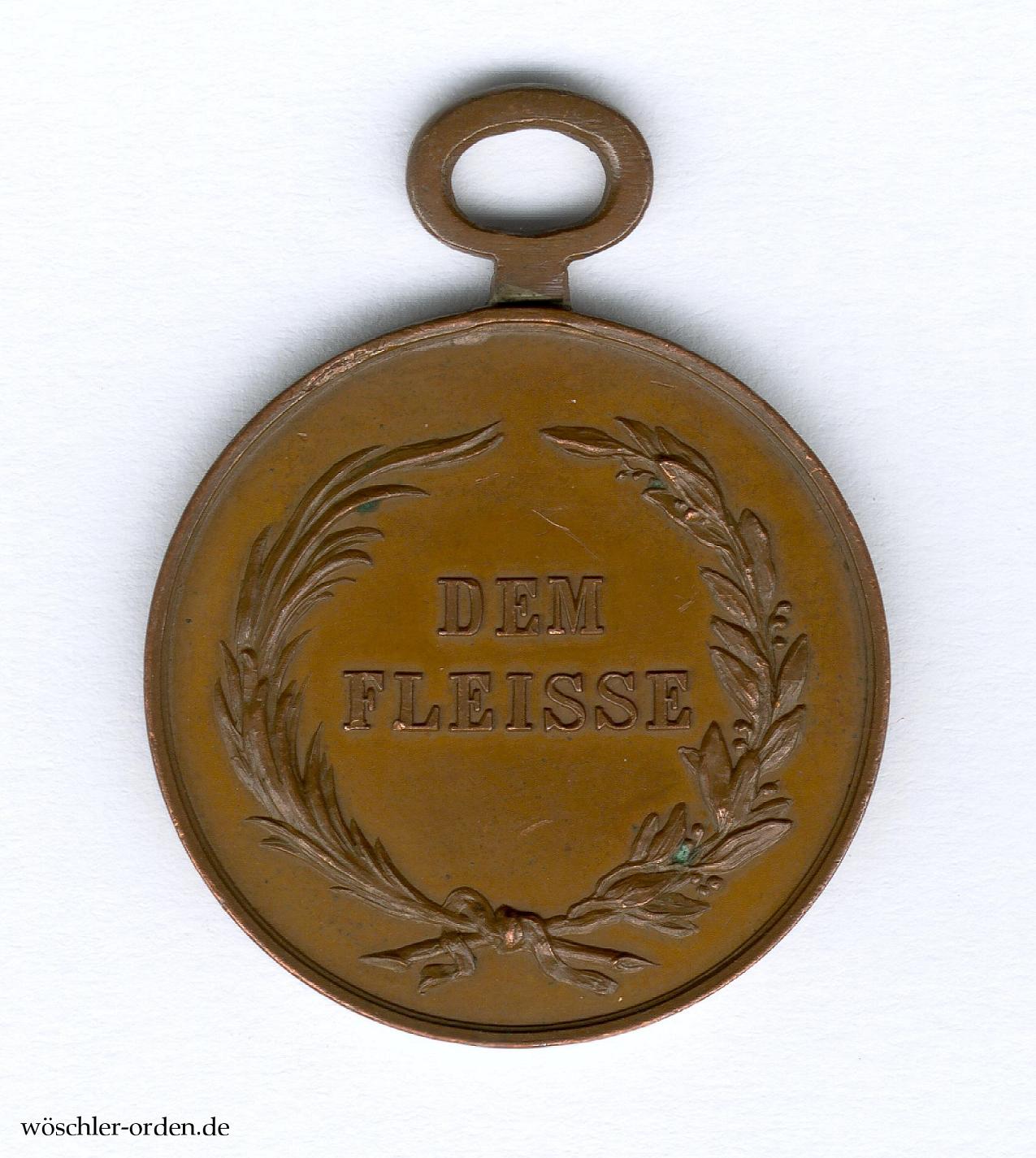 Bronze, etwa 31 mm, geprägt und patiniert, wohl aus den 1850er-Jahre. Vorderseitig Dedikationsumschrift „DER REGIMENTS INHABER FML. CARL BARON CULOZ“ um Trophäen, rückseitig zweizeilige Zweckinschrift „DEM / FLEISSE“ zwischen gebundenem Eichenlaub- und Lorbeerkranz. An angelöteter Henkelöse, wie sie für die österreichischen Tapferkeitsmedaillen dieser Zeit typisch ist.