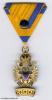 Gute, überdurchschnittliche Erhaltung, die Emaille der Medaillons und der „Edelsteine“ völlig unbeschädigt, lediglich die der „Perlen“ teils oberflächlich minimal bestoßen. An konfektioniertem Dreiecksband; dieses unbeschadet und noch sehr farbfrisch.