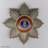 Bruststern aus Fertigung des Hofjuweliers W. Lameyer & Sohn, Hannover, etwa der 1880er- bis 1890er-Jahren. Silber, mehrteilig gefertigt, das Medaillon flinkiert und transluzid blau und rot emailliert, (lediglich!) das aufgelegte Monogramm vergoldet. Die Rückseite komplett vergoldet und mit Tragenadel, diese innenseitig mit Herstellerbezeichnung „LAMEYER [Halbmond] [Krone] 800“ punziert.