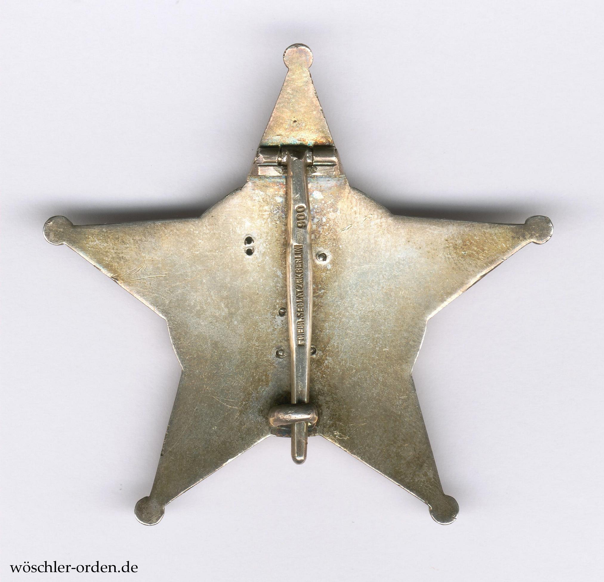 Wohl zeitgenössische, sehr hochwertige und sicherlich deutsche Zweitfertigung mutmaßlich der Firma C. F. Zimmermann, Pforzheim. Silber, der Halbmond separat gefertigt und aufgelötet, Tughra, „Al Ghazi“ und Jahreszahl jeweils zweifach fein vernietet, erstere sauber ausgesägt. Rückseitig vertikal angebrachtes hochwertiges Nadelsystem, die Tragenadel mit Lieferantenpunzierung „FRIEDR.SEDLATZEK BERLIN“ der Firma Friedrich Sedlatzek sowie Punzierung „900“ für den Feingehalt.
