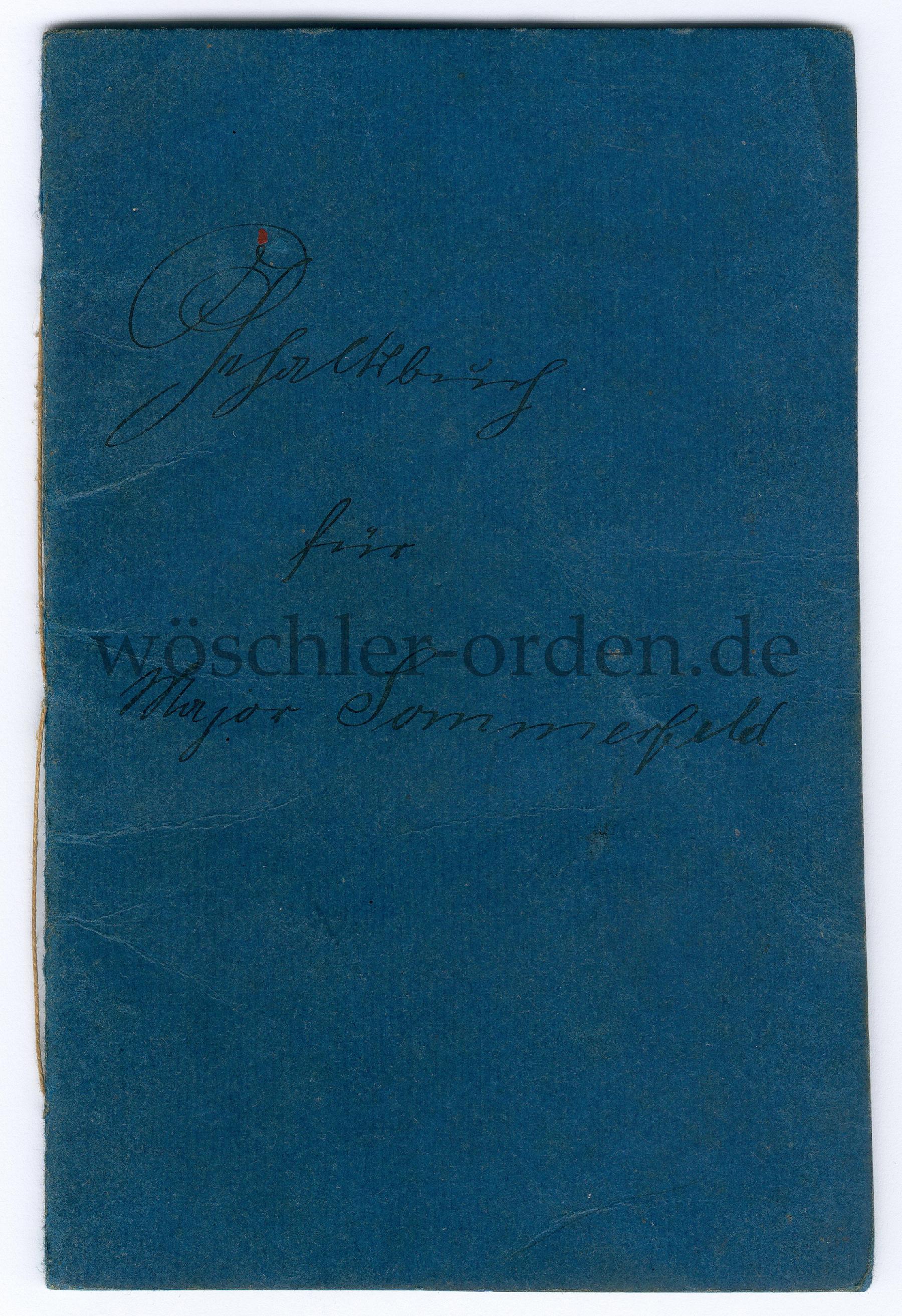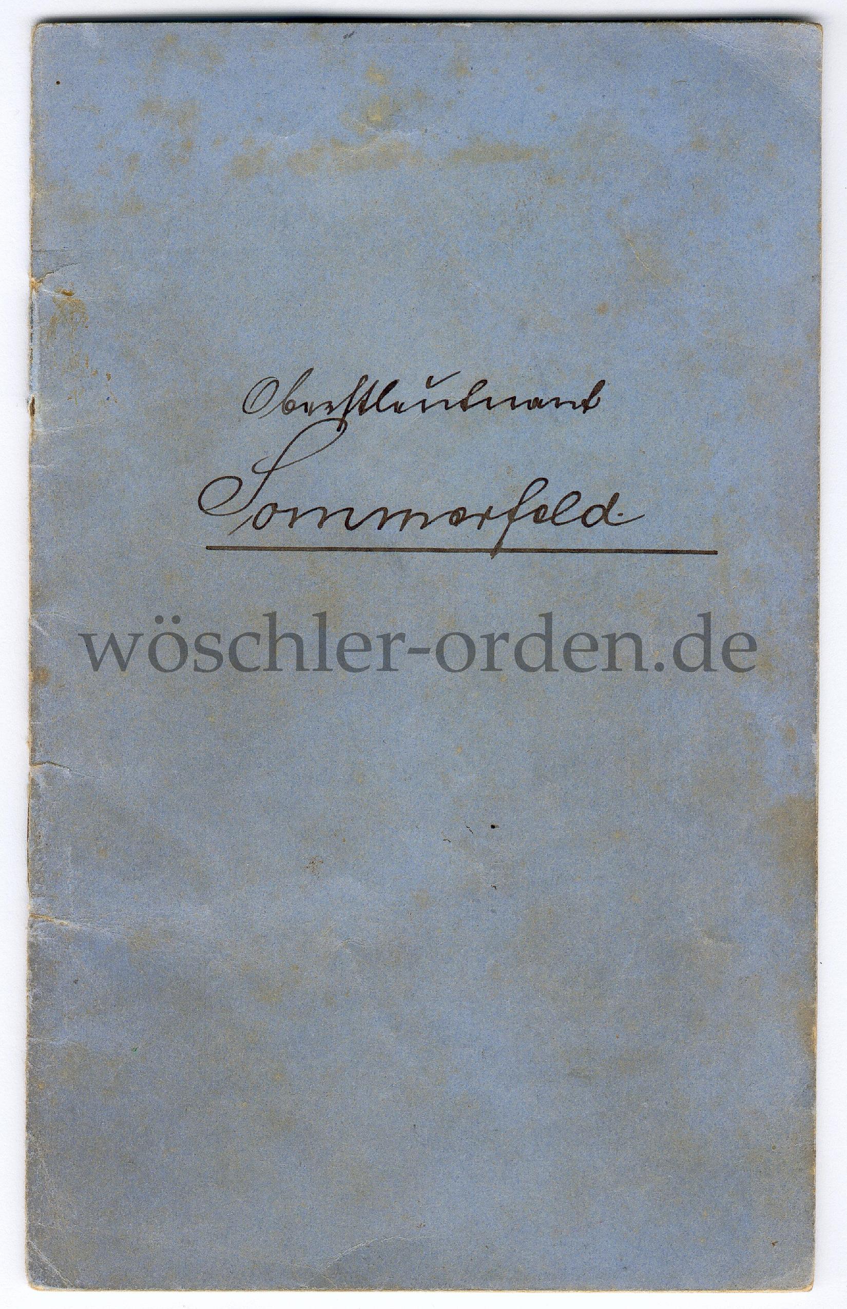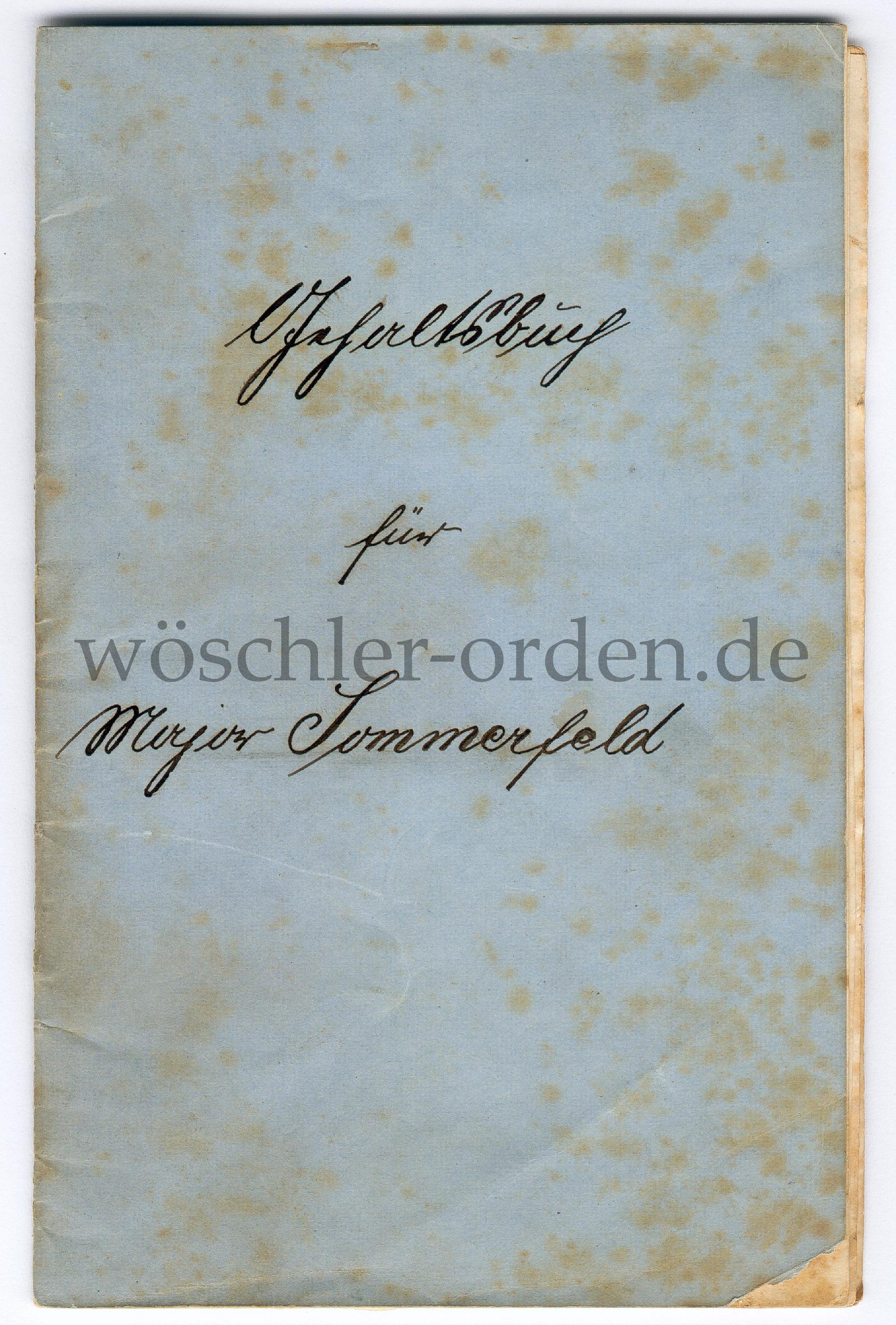 Dazu außerdem insgesamt fünf Gehaltsabrechnungs-, Gehalts- und Soldbücher für den Major, Oberstleutnant und Generalmajor Sommerfeld, die interessante Einblicke in die finanzielle Situation eines höheren preußischen Offiziers in der Zeit vor und während des Krieges geben.