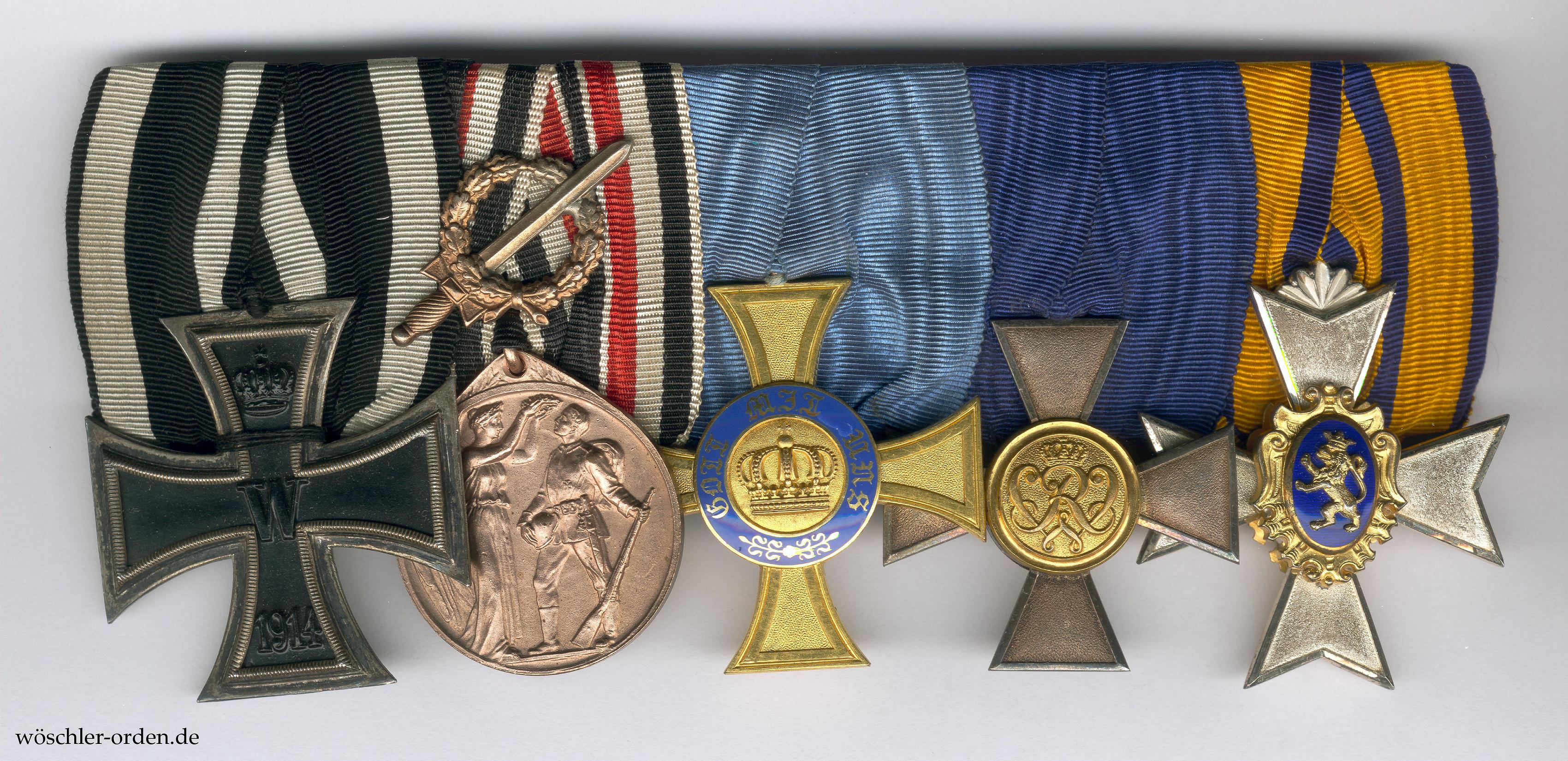 Deutsches Reich, 5er Ordensschnalle eines vormals Königlich Preußischen Reserve- oder Landwehroffiziers, mit folgenden Auszeichnungen: