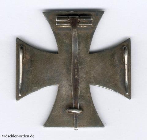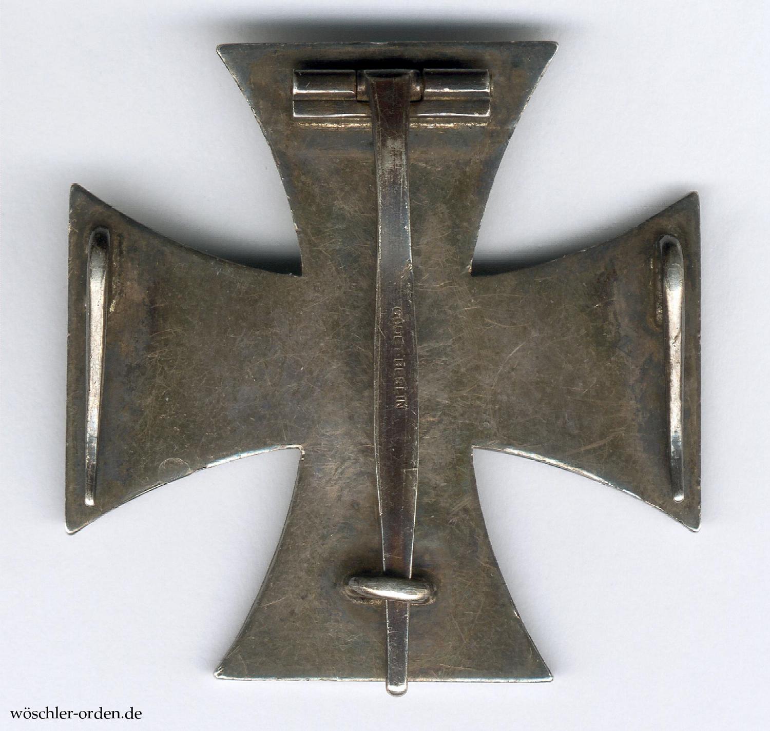 Zeitgenössische, nichtprobemäßige Zweifertigung mit gegossenem, mattschwarz lackiertem Eisenkern in Silberzarge. Flache Ausführung an Nadel, mit zusätzlichen Haltehaken. Auf der Tragenadel Herstellerpunzierung „GODET - BERLIN“ der Hofjuweliere Jean Godet & Sohn, Berlin. Da die Hofjuweliere J. Godet & Sohn bereits recht früh auf geprägte Kerne umstiegen, dürfte dieses Exemplar in die Frühphase des Weltkrieges, etwa um 1914/15, datieren.
