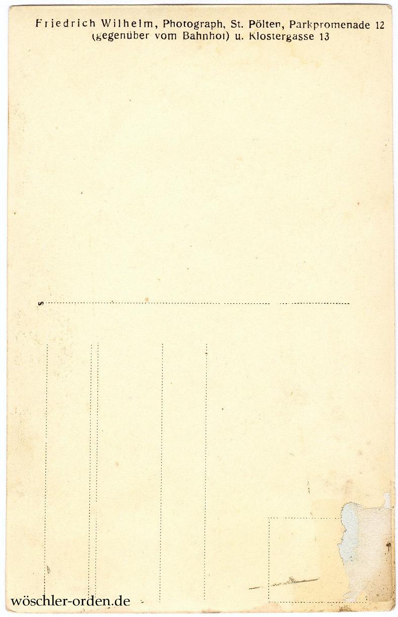 Postkartenformat, aufgenommen beim Photographen Friedrich Wilhelm in St. Pölten, Niederösterreich, wohl 1920er-Jahren, ungelaufen und unbeschriftet.