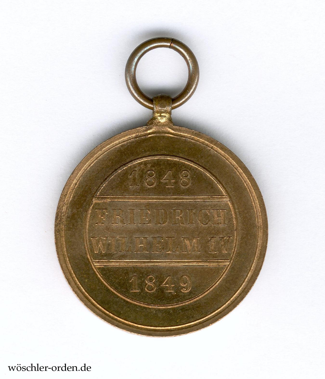 Die Hohenzollernsche Denkmünze 1848/1849 wurde am 23. August 1851 durch König Friedrich Wilhelm IV. als dem Königlichen Hausorden von Hohenzollern angegliederte, nur einmalig zu vergebende Auszeichnung für Offiziere und Soldaten der Armee, welche sich in den während der Jahre 1848 und 1849 vorgefallenen Gefechte gegen die Aufständischem bewährt hatten, gestiftet. Der Umstand, dass eine Kriegsdenkmünze einem allgemeinen Haus- oder Verdienstorden angegliedert wurde, ist ein zumindest für Preußen einmaliger Vorgang.