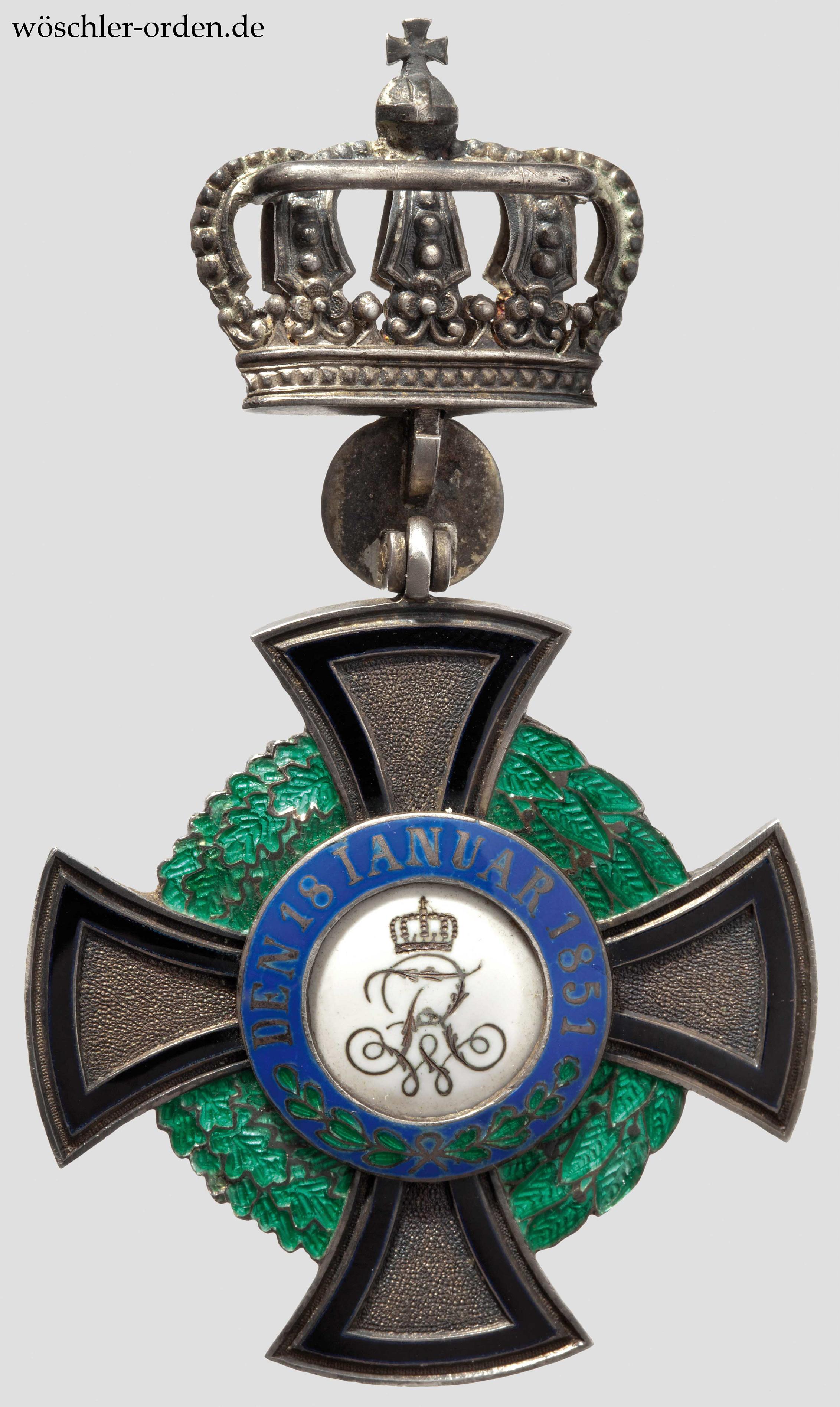 Beim Allgemeinen Ehrenzeichen handelt es sich um ein Exemplar des zweiten Modells (ab 1847) in der ersten Ausprägung, die so bis etwa 1885 gefertigt wurde.