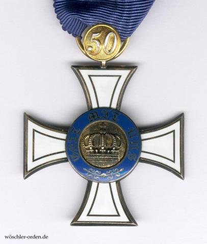 Königreich Preußen, Königlicher Kronenorden, Kreuz III. Klasse mit Dienstaltersabzeichen 50, verliehen 1861 bis 1918.