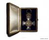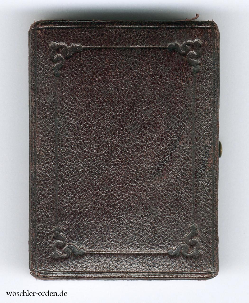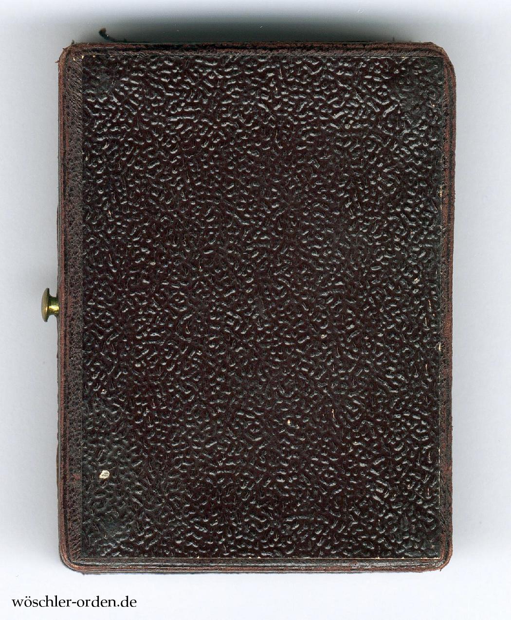 Dazu das Verleihungsetui wohl aus Fertigung der Firma H. F. Schwartz, Berlin, in rotbraunem Leder mit geprägtem Dekor auf dem Deckel, innen in weißer Seide und violettem Samt, mit den typischen goldenen Zierleisten, sowie der Umkarton aus hellbrauner Pappe, mit gelbem Etikett mit rotem Aufdruck „Kreuz / des Allgemeinen / Ehrenzeichens.“ und handschriftlichem Zusatz „mit der goldenen Krone“.