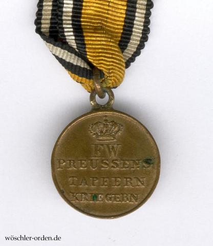 Königreich Preußen, Kriegs-Denkmünze 1815 für Kämpfer, verliehen ab 1815.
