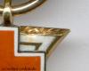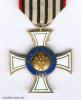 Der obere Kreuzarm des hohl gefertigten Ordenskreuzes auf Höhe der Gravur eingedellt, die Emaille darunter scheinbar ausgebessert. Ebenso zwei Ausbesserungen der blauen Emaille des rückseitigen Medaillons. Ansonsten in altersgemäß gutem Zustand ohne nennenswerte Schäden. An Band.