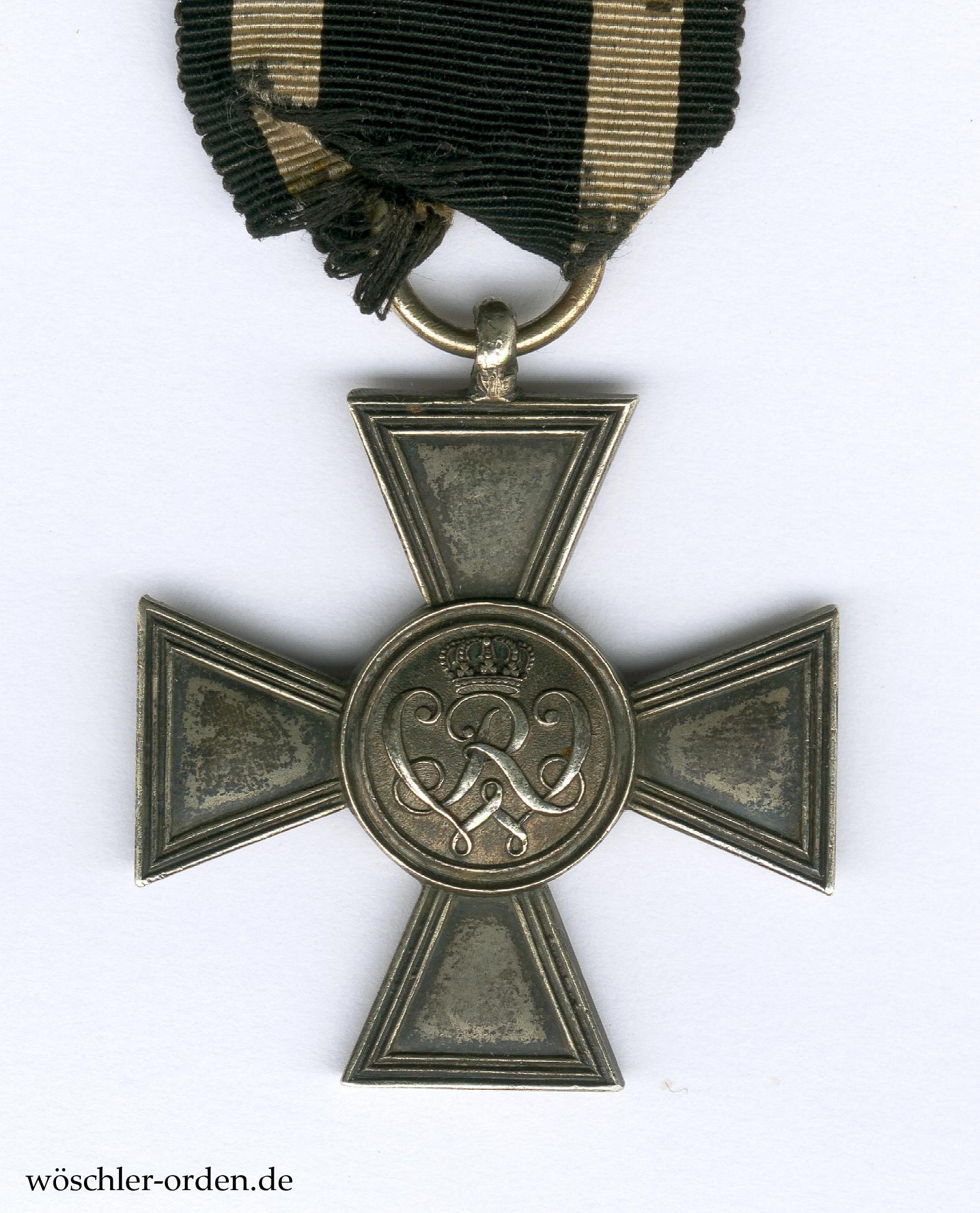 Exemplar des endgültigen, ab 1864 verliehenen Modells mit Inschrift „KRIEGS / VERDIENST“ im Vorderseiten- und Monogramm König Wilhelms im Rückseitenmedaillon.