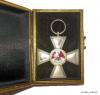 Das Kreuz in guter, nur leicht getragener Erhaltung, lediglich die Kreuzarmflächen etwas fleckig patiniert. Das Verleihungsetui mit geringfügigen Gebrauchsspuren, jedoch in Anbetracht des Alters ebenfalls zumindest angemessener Erhaltung. Ohne Band.