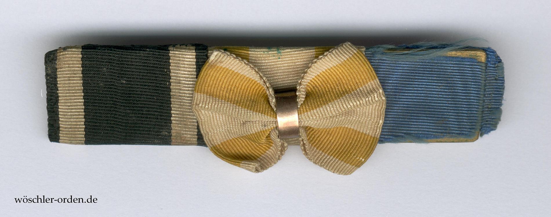Königreich Preußen, 3er Ordensschnalle eines hohen Offiziers, wohl zumindest eines Oberst, ohne die Auszeichnungen, mit den Bändern zu folgenden Auszeichnungen: