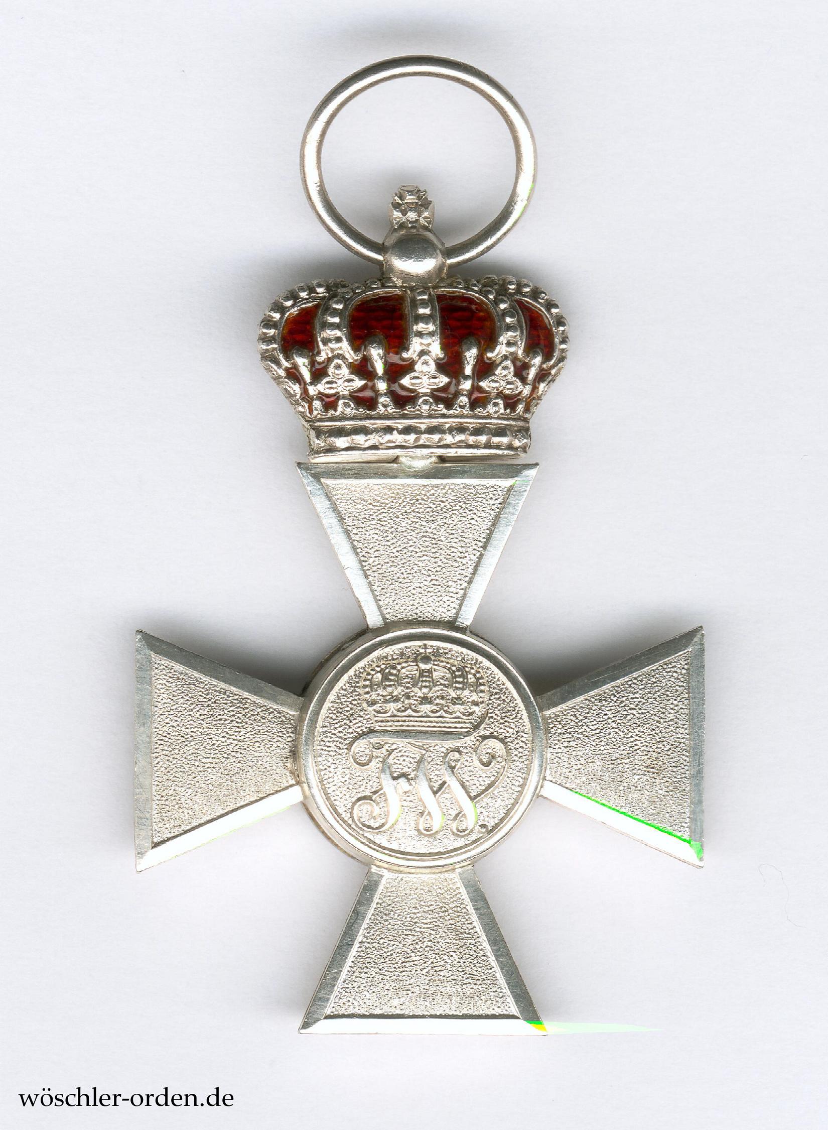 Silber, das Medaillon und die Krone emailliert, am unteren Kreuzarm Ritzmarke „W“ der Hofjuweliere Joh. Wagner & Sohn, Berlin.