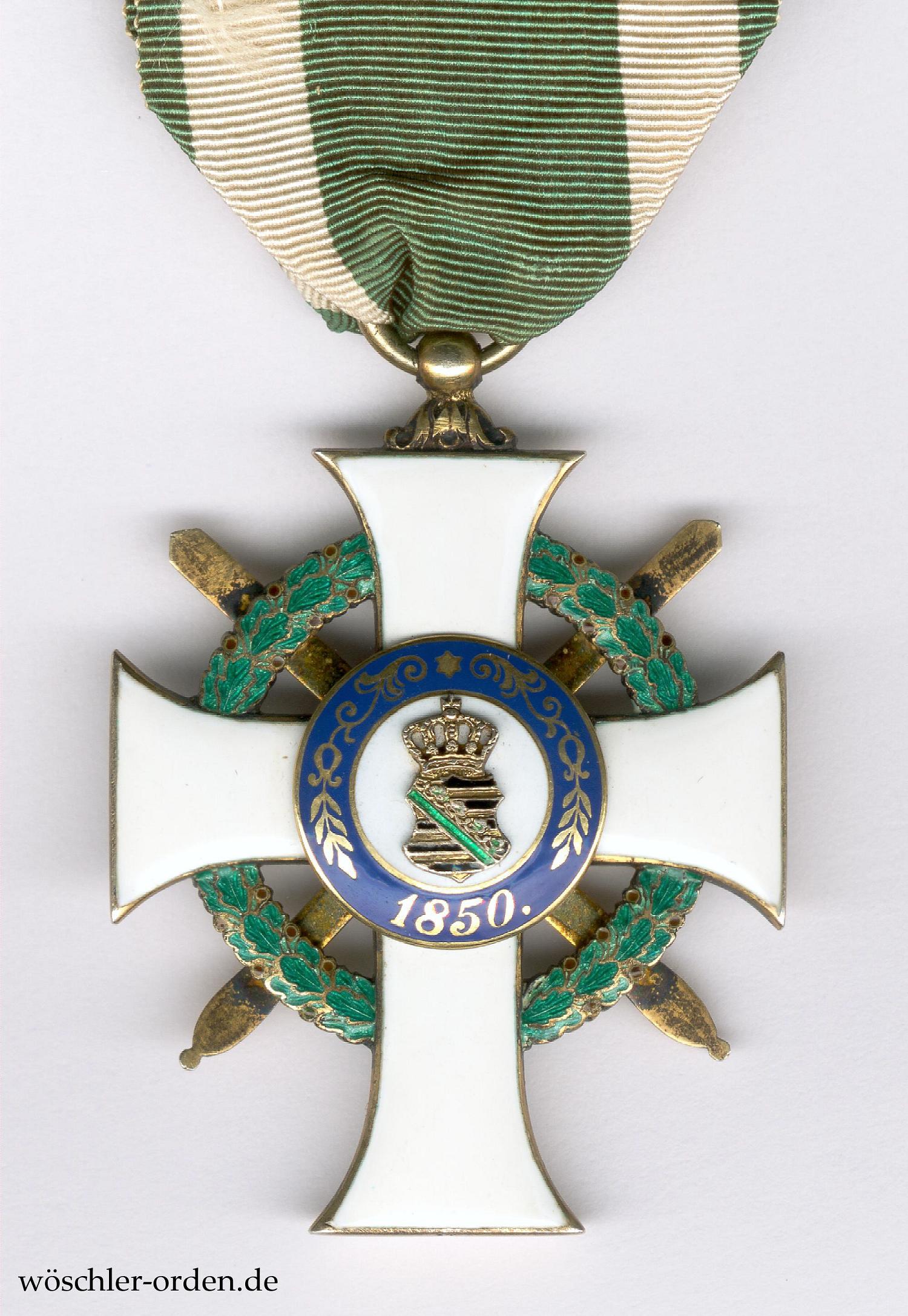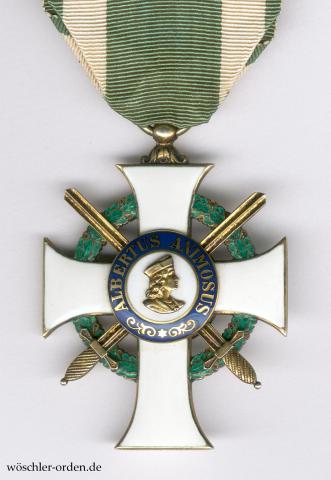Königreich Sachsen, Königlich Sächsischer Albrechtsorden, Ritterkreuz I. Klasse mit Schwertern, verliehen 1851 bis 1918, bzw. bis 1876 als „Ritterkreuz mit Schwertern“.