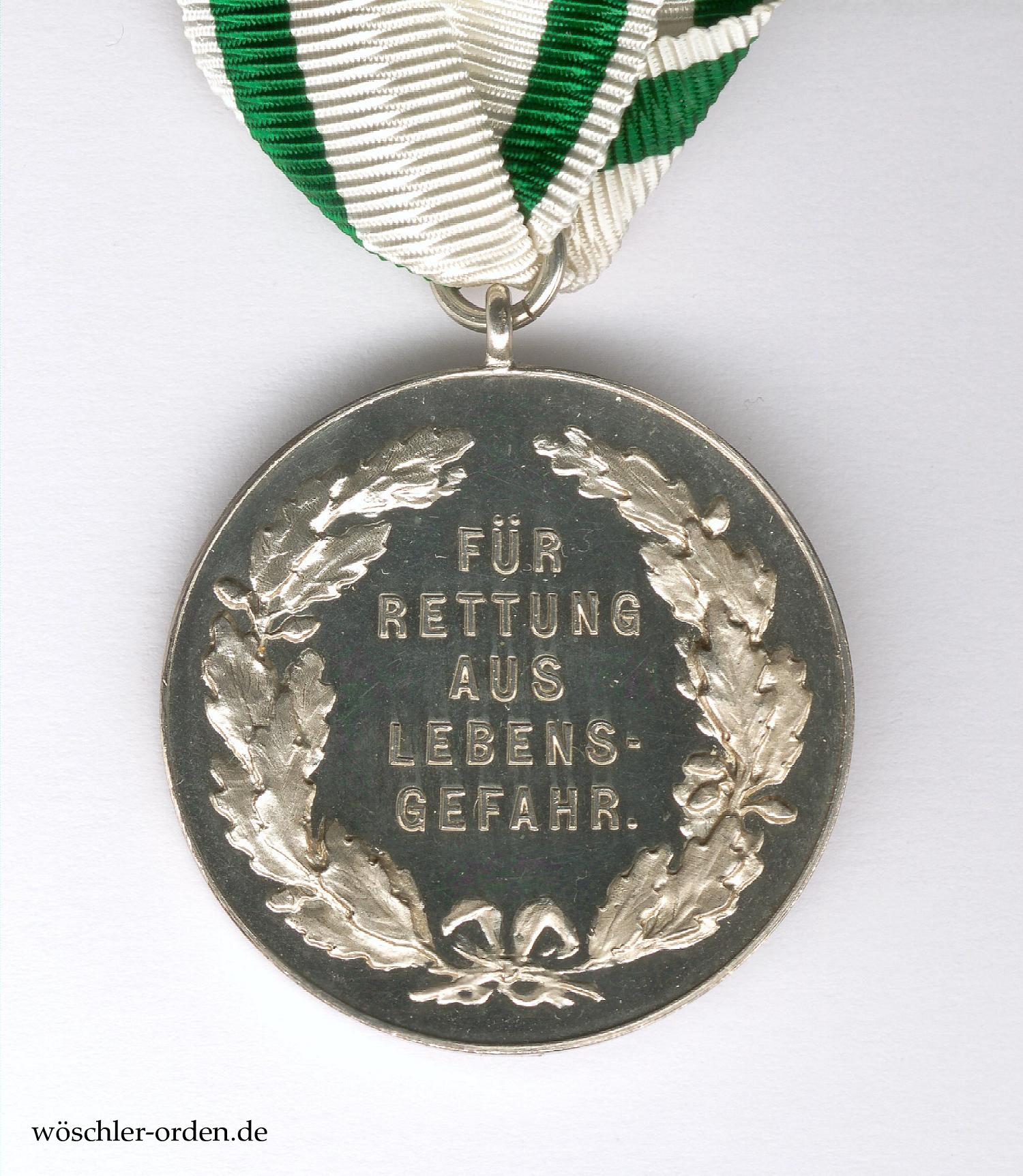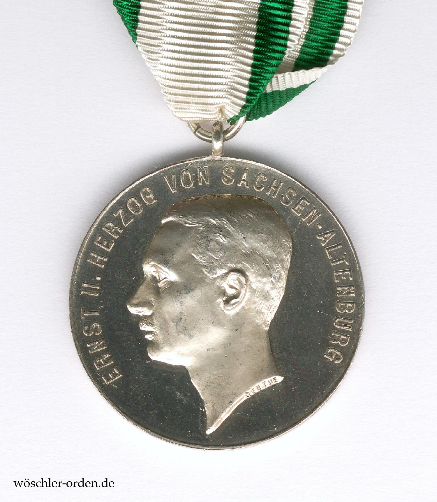 Die Lebensrettungsmedaille wurde von Herzog Ernst I. am 1. April 1882 „für solche, welche mit eigener Lebensgefahr das Leben eines Verunglückten gerettet haben“ gestiftet und unter seiner Regierung weniger als vierzigmal verliehen. Nach dem Regierungsantritt Herzog Ernst II. wurde die Medaille beibehalten, erhielt jedoch eine neue Gestalt. Von diesem Modell sind lediglich acht (!) Verleihungen nachweisbar, es wurden jedoch sicherlich mehr Medaillen geprägt. Möglicherweise stammt das Exemplar aus dem unverliehen gebliebenen und in Umlauf gekommenen „Restbestand“ des Altenburger Hofjuweliers Ernst Eberhardt.
