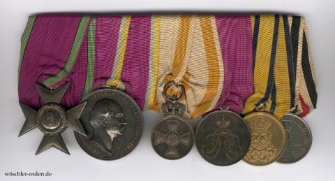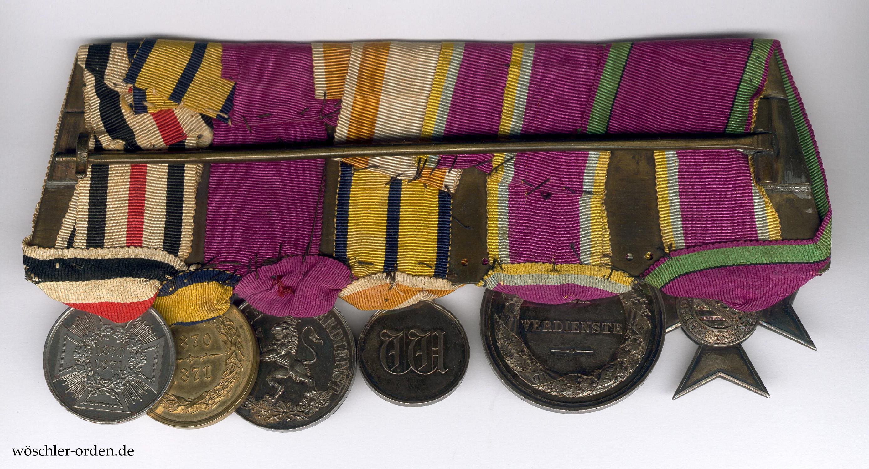 Herzogtum Sachsen-Altenburg, 6-teilige Große Ordensschnalle eines persönlichen Bedienten des Herzogs Ernst I., der diesen in den Deutsch-Französischen Krieg begleitet hatte, mit folgenden Auszeichnungen: