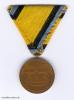 Exemplar des ersten, bis 1915 geprägten Modells mit zehnzeiliger Inschrift auf der Rückseite. Kupfer geprägt und patiniert, an angelöteter Ringöse mit offenem Bandring. Hiervon wurden insgesamt 1052 Exemplare geprägt, in Bronze ist die Medaille also seltener als in Silber. An altem, dreieckig konfektioniertem Originalband für Herren.