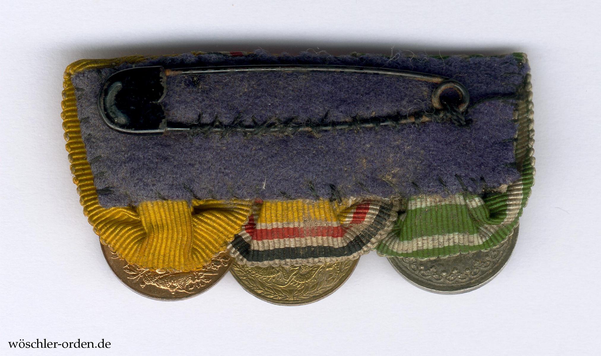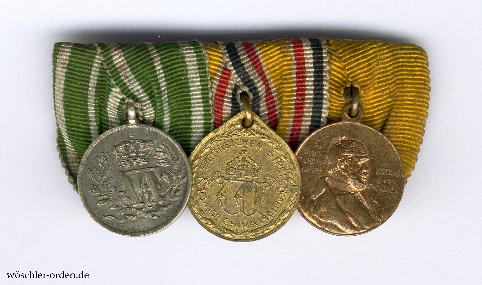Königreich Sachsen, 3er Miniatur-Ordensschnalle eines Berufssoldaten und China-Veteranen, mit folgenden Auszeichnungen: