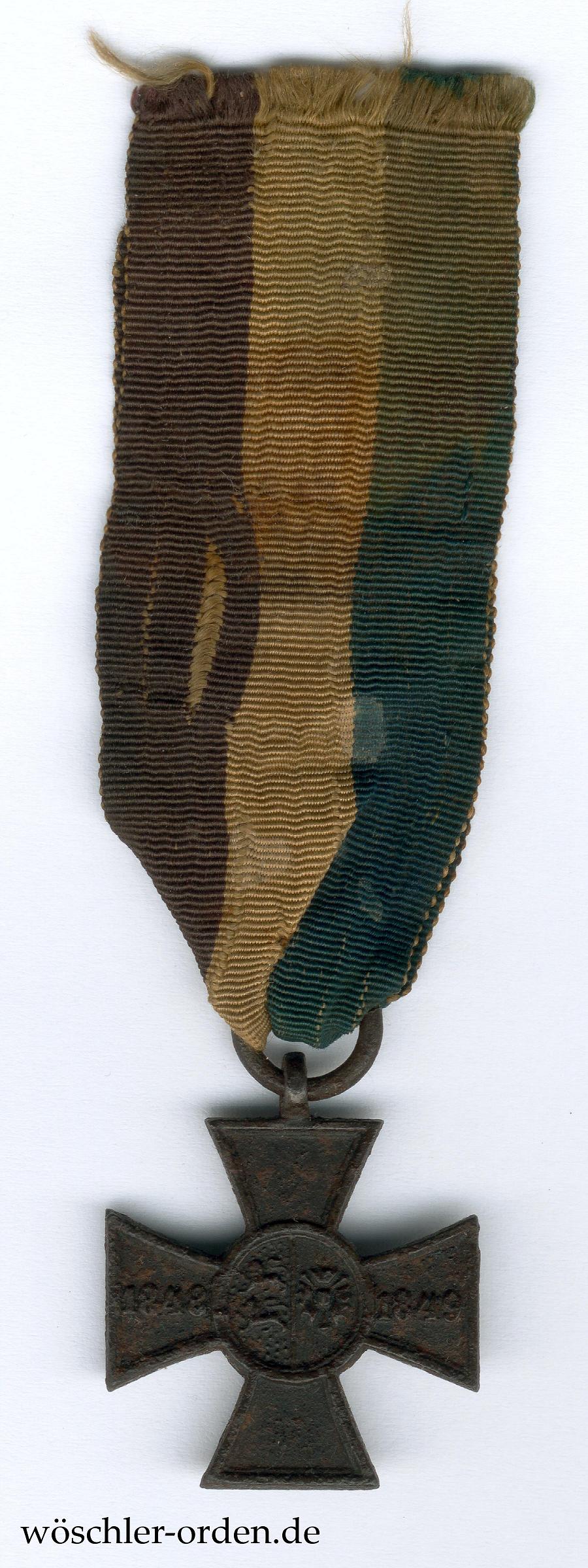 Herzogtümer Schleswig und Holstein, Erinnerungskreuz für die schleswig-holsteinische Armee an die Kriegsjahre 1848 und 1849, verliehen 1850.