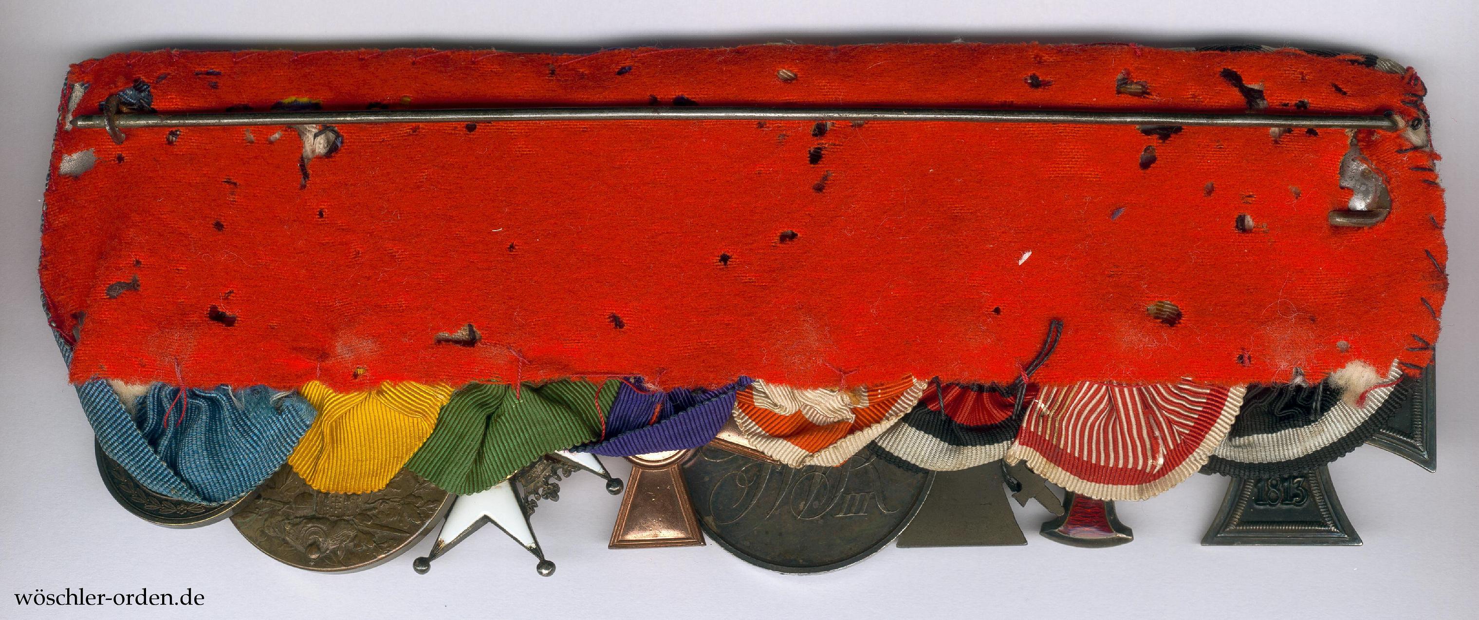 Deutsches Reich, 8er Ordensschnalle eines vormals Königlich Preußischen Berufssoldaten im Unteroffiziersrang, mit folgenden Auszeichnungen: