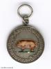 Silber geprägt, etwa 26,5 mm, auf der Vorderseite ein Hausschwein nach links in Emaillemalerei. An angelöteter Parallelöse mit Verbindungsringchen und offenem Tragering. Ohne Herstellerpunzierung. Gefertigt wurden diese Medaillen durch die Firma Fabergé in St. Petersburg, Russland, die rege Geschäftsbeziehungen nach Siam unterhielt.