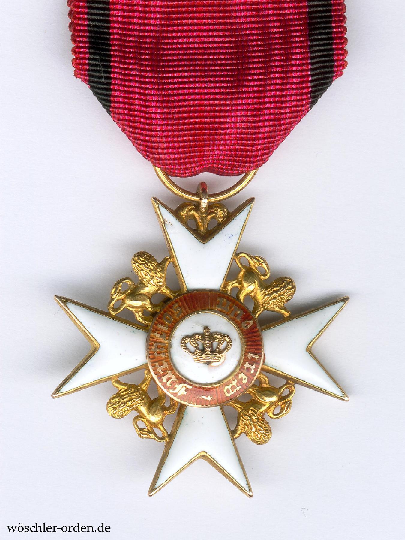 Königreich Württemberg, Orden der Königlichen Württembergischen Krone, Ritterkreuz mit Löwen, verliehen 1818 bis 1918, bzw. bis 1870 als „Ritterkreuz“, von 1870 bis 1886 als „Ritterkreuz I. Klasse“ und von 1886 bis 1892 als „Ehrenritterkreuz“.