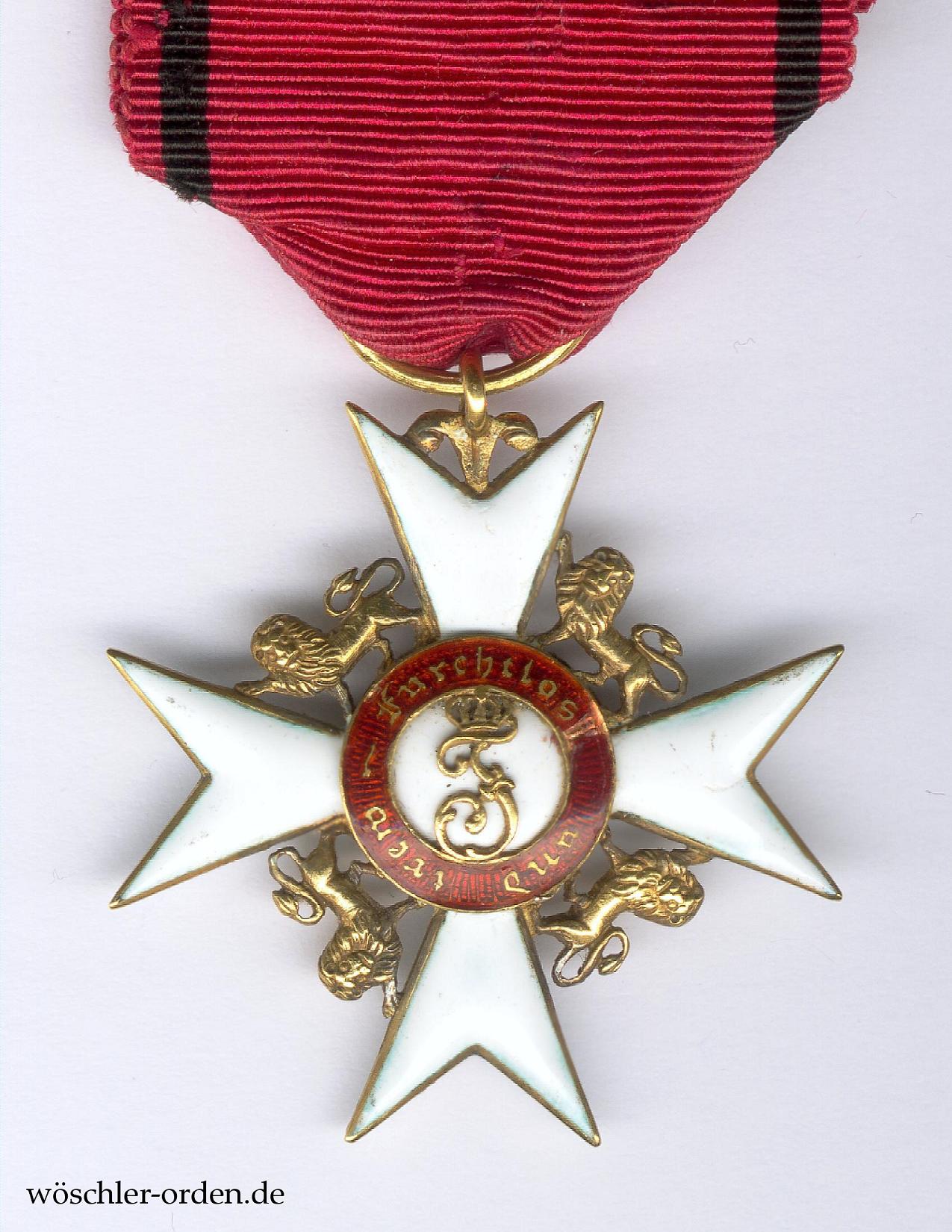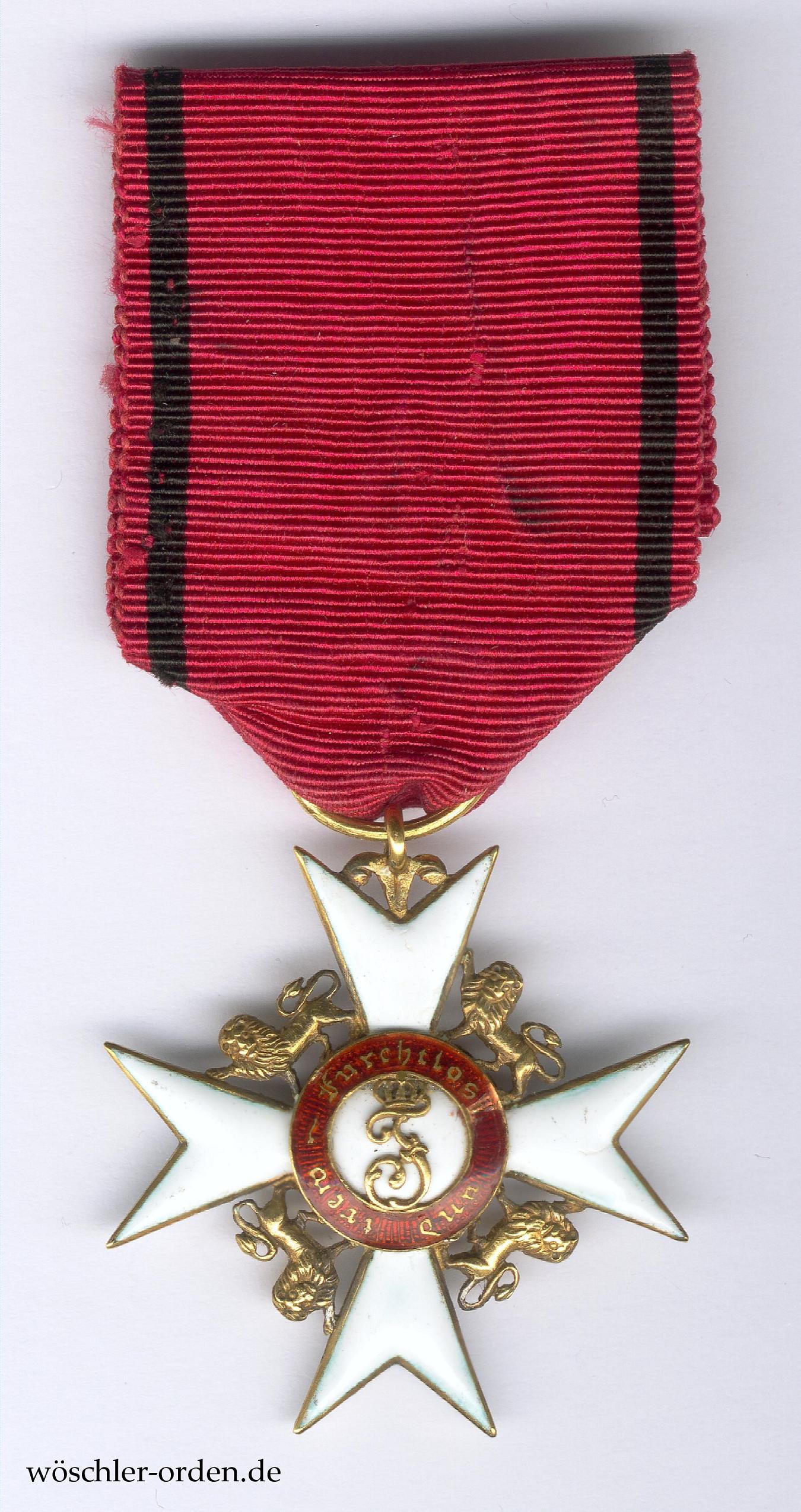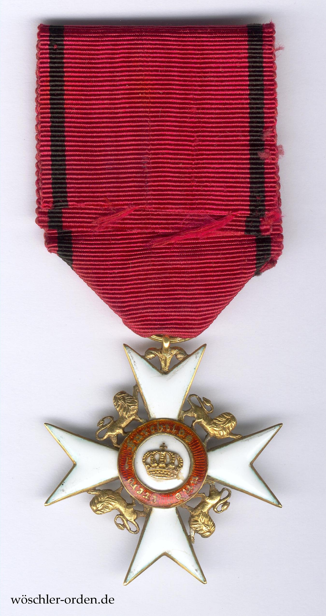 Königreich Württemberg, Orden der Königlichen Württembergischen Krone, Ritterkreuz mit Löwen, verliehen 1818 bis 1918, bzw. bis 1870 als einklassiges „Ritterkreuz“, von 1870 bis 1886 als „Ritterkreuz I. Klasse“ und von 1886 bis 1892 als „Ehrenritterkreuz“.