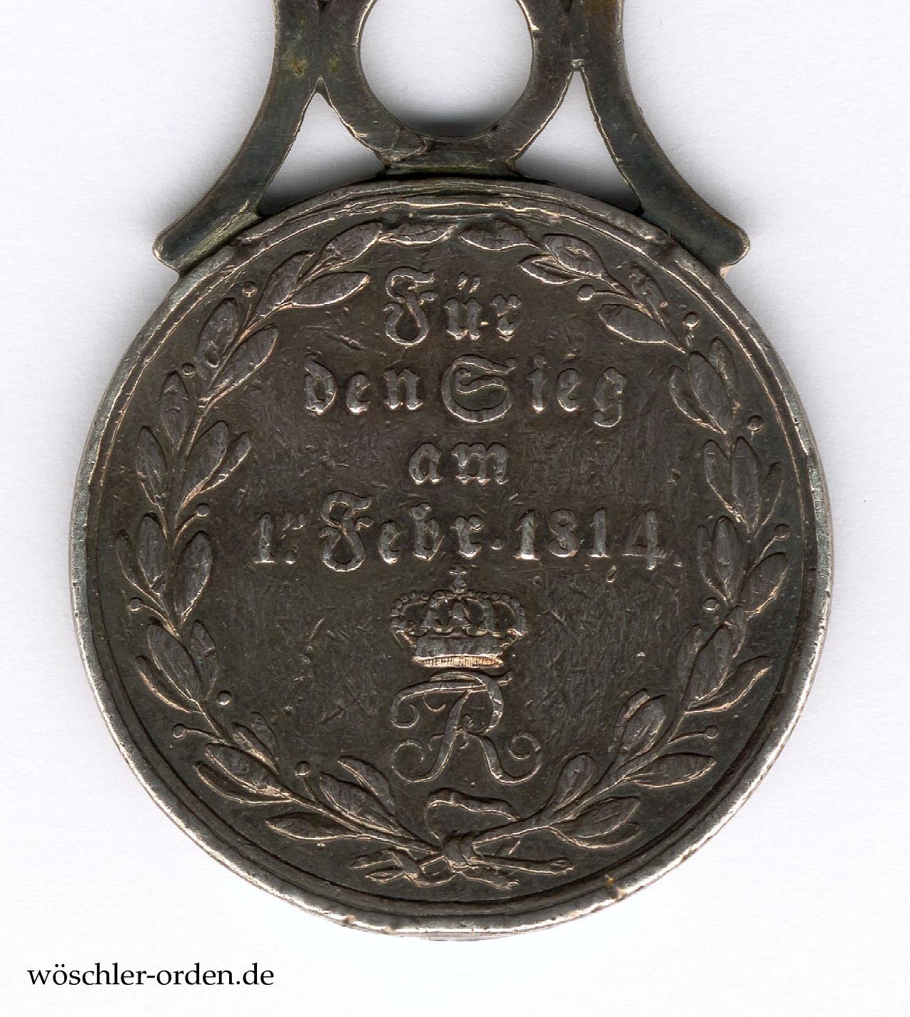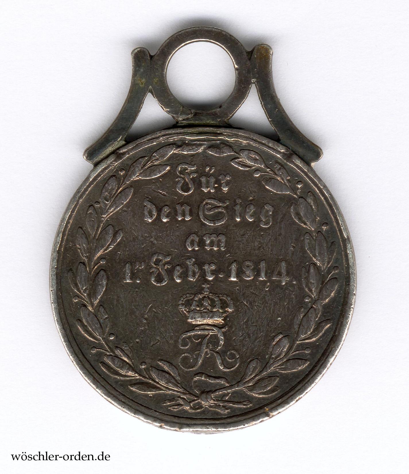 Königreich Württemberg, Silberne Ehrenmedaille für den Sieg am 1. Februar 1814 bei Brienne, verliehen unter dem 8. Februar sowie dem 15. März 1814.