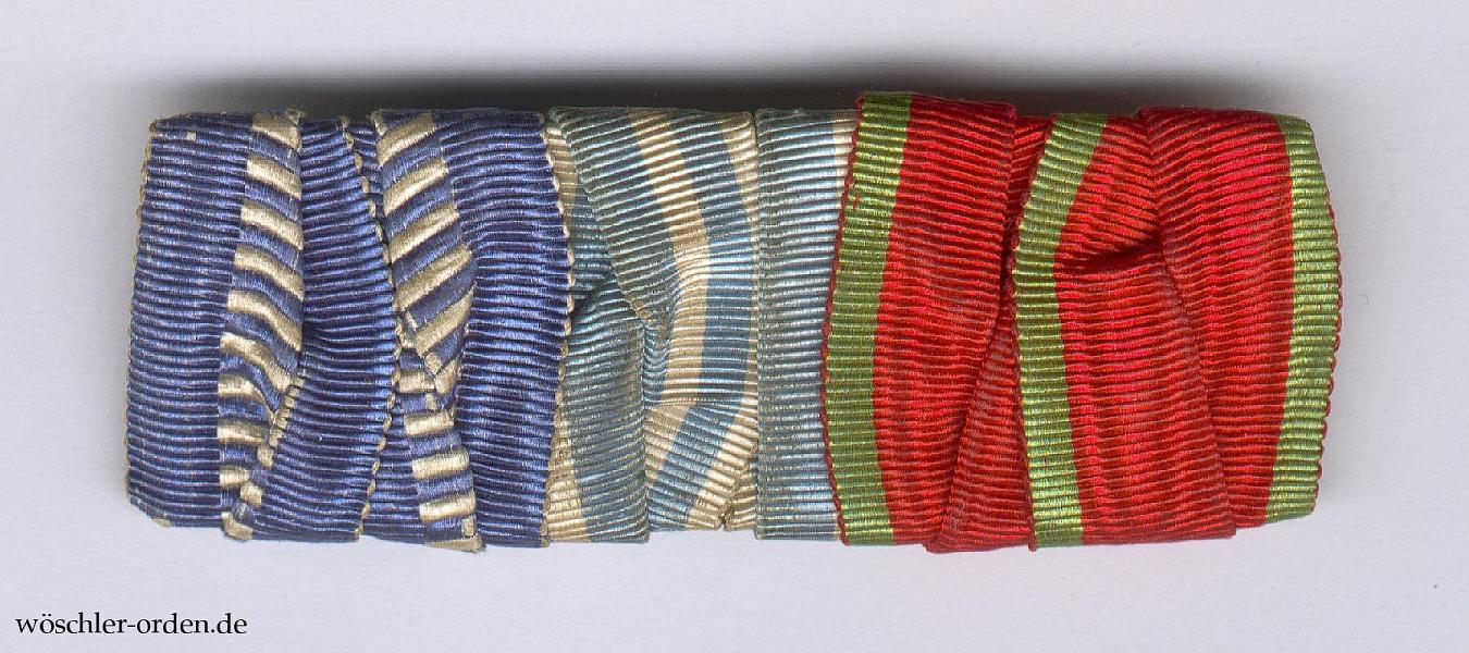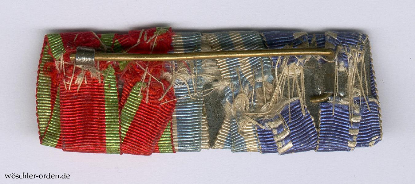 Königreich Bayern, 3er Feldspange eines Berufssoldaten, wohl höherrangigen Unteroffiziers oder aber eines Offiziers, der keinen Orden erhielt, mit folgenden Auszeichnungen: