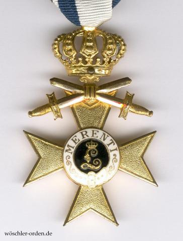 Das Militär-Verdienstkreuz wurde 1866 durch König Ludwig II. zusammen mit dem Militär-Verdienstorden als diesem affiliiertes Ehrenzeichen in ursprünglich einer Klasse gestiftet. Schwerter wurden erst 1891 nachgestiftet, durften jedoch von denen, die die Auszeichnung im Kriege erhalten hatten, nachträglich angelegt werden. Im Jahr 1905 wurde das Militär-Verdienstkreuz erstmals umgestaltet und zweiklassig, 1913 schließlich dreiklassig bzw. sechsstufig. Außerdem wurden unterschiedliche Bänder für Kreuze mit oder ohne Schwerter eingeführt. Nach Angaben von Bernd Döbel, Königswinter, wurden im bzw. für den Weltkrieg insgesamt lediglich 146 MVK 1. Klasse mit der Krone und Schwertern verliehen, davon nur acht (!) am regulärem Kriegsband.