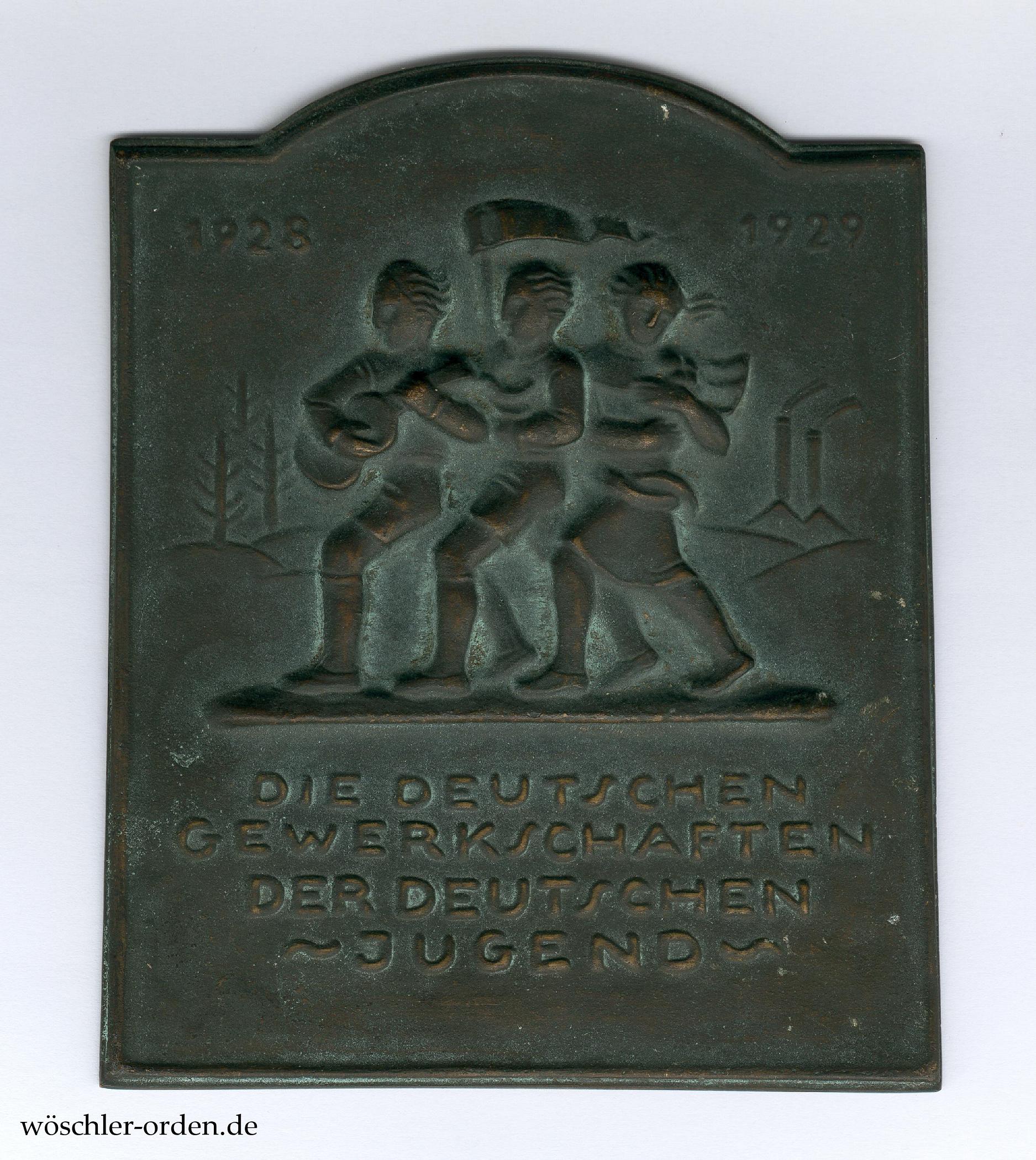 Deutsches Reich, Kuratorium der Gewerkschaften(?), Plakette für die Mitarbeiter und Förderer der 1923 errichteten Jugendherbergen, von 1928/29.