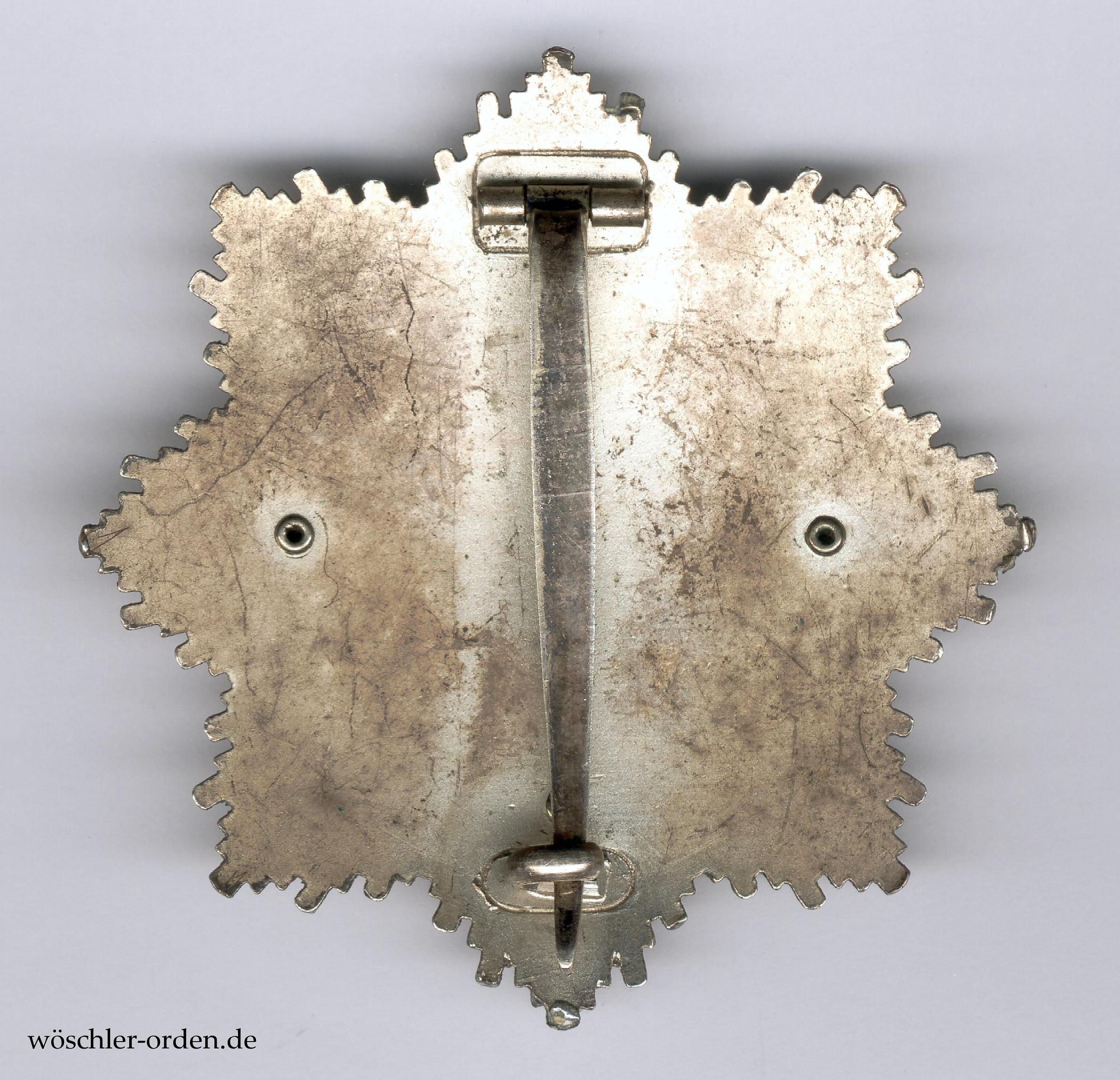 Die Dekoration in guter, leicht getragener Erhaltung mit vollkommen unbeschädigter Emaille, lediglich ein paar Sternspitzen tragebedingt bestoßen und die Versilberung stellenweise etwas patiniert. Das Verleihungsetui mit üblichen Alters- und Gebrauchsspuren, stellenweise etwas bestoßen oder berieben.