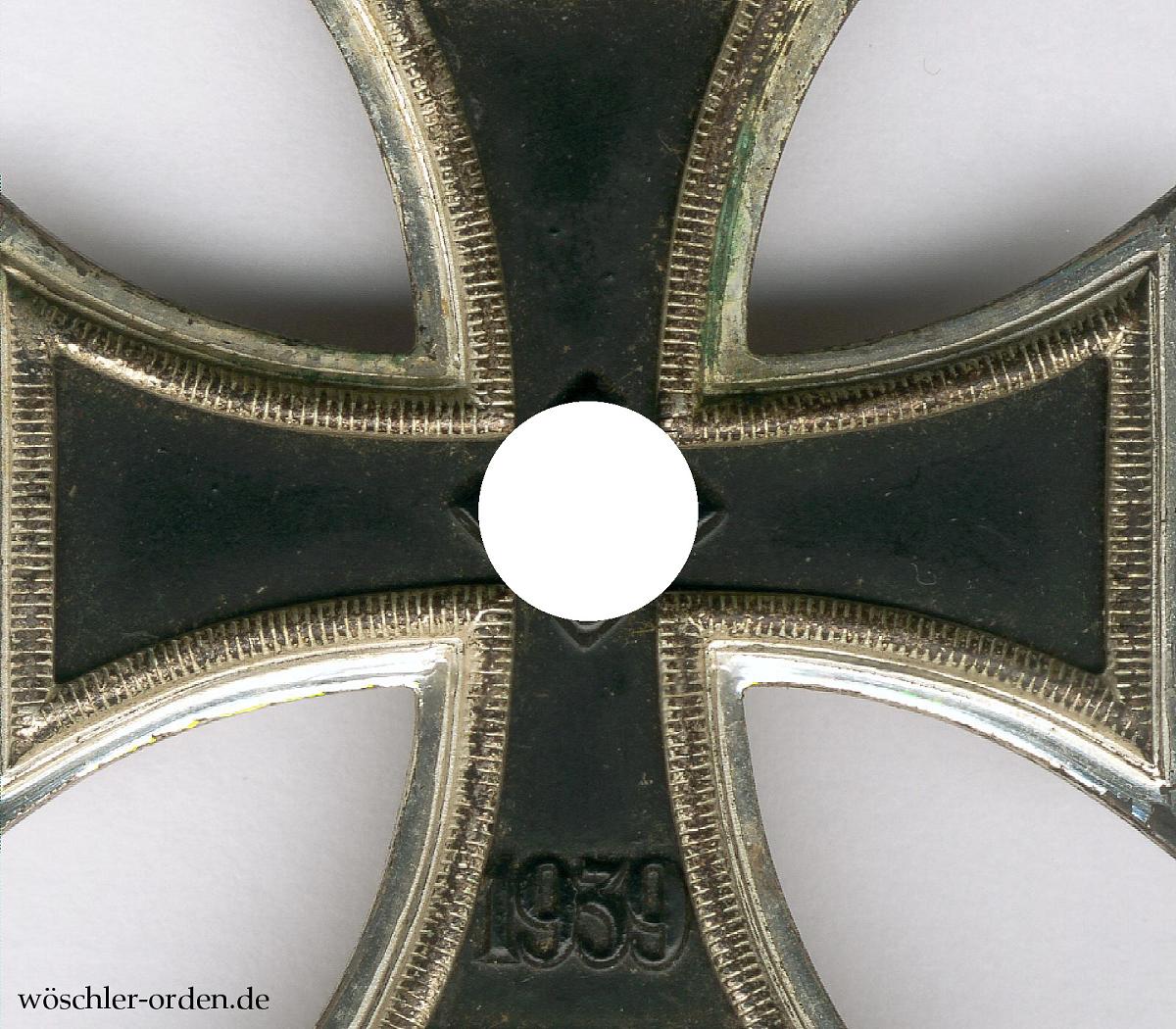 Sehr früh verliehenes Exemplar in der sog. Schinkelform mit mattschwarz lackiertem Nicht-Eisenkern in einer aus Buntmetall geprägten und matt versilberten Zarge. Naturgemäß ohne eine Herstellerpunzierung, jedoch zweifelsfrei der Fertigung der Firma Wilhelm Deumer, Lüdenscheid, zuzuordnen. Rückseitig ordentlich eingeritzt der Name des mutmaßlichen Trägers sowie ein Datum vom November 1939.